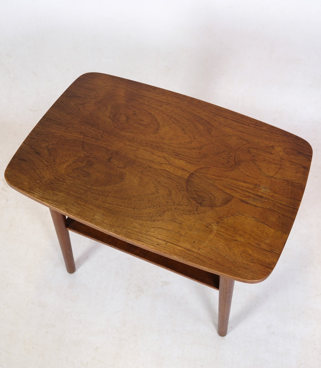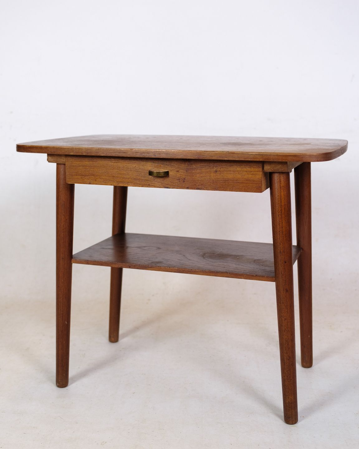 SolgtSidebord / natbord med skuffe og hylde i teaktræ af dansk design fra omkring 1960'erne.