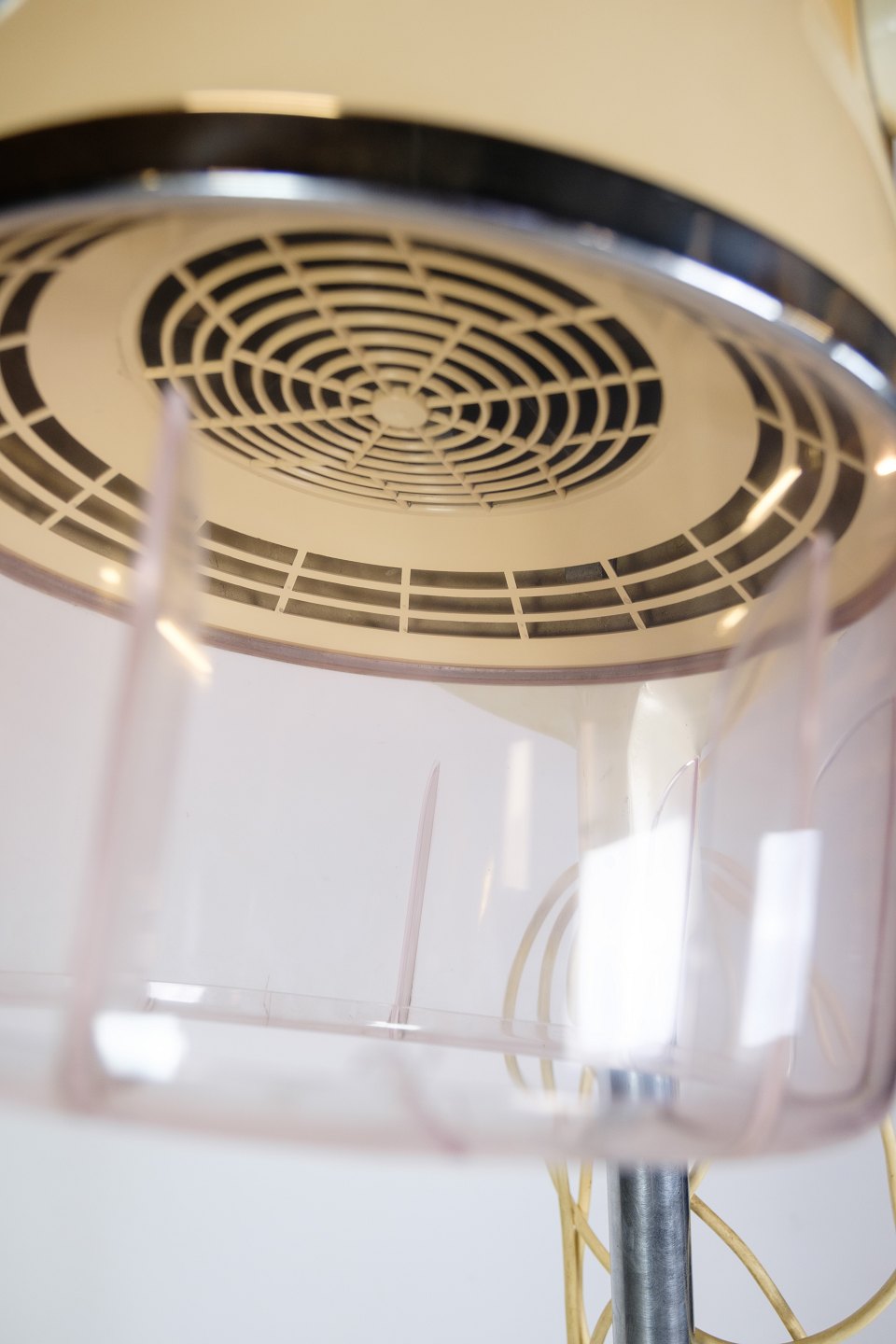 Ældre retro tørrehjelm på stativ på hjul, model Imperial fra perioden 1950'erne.