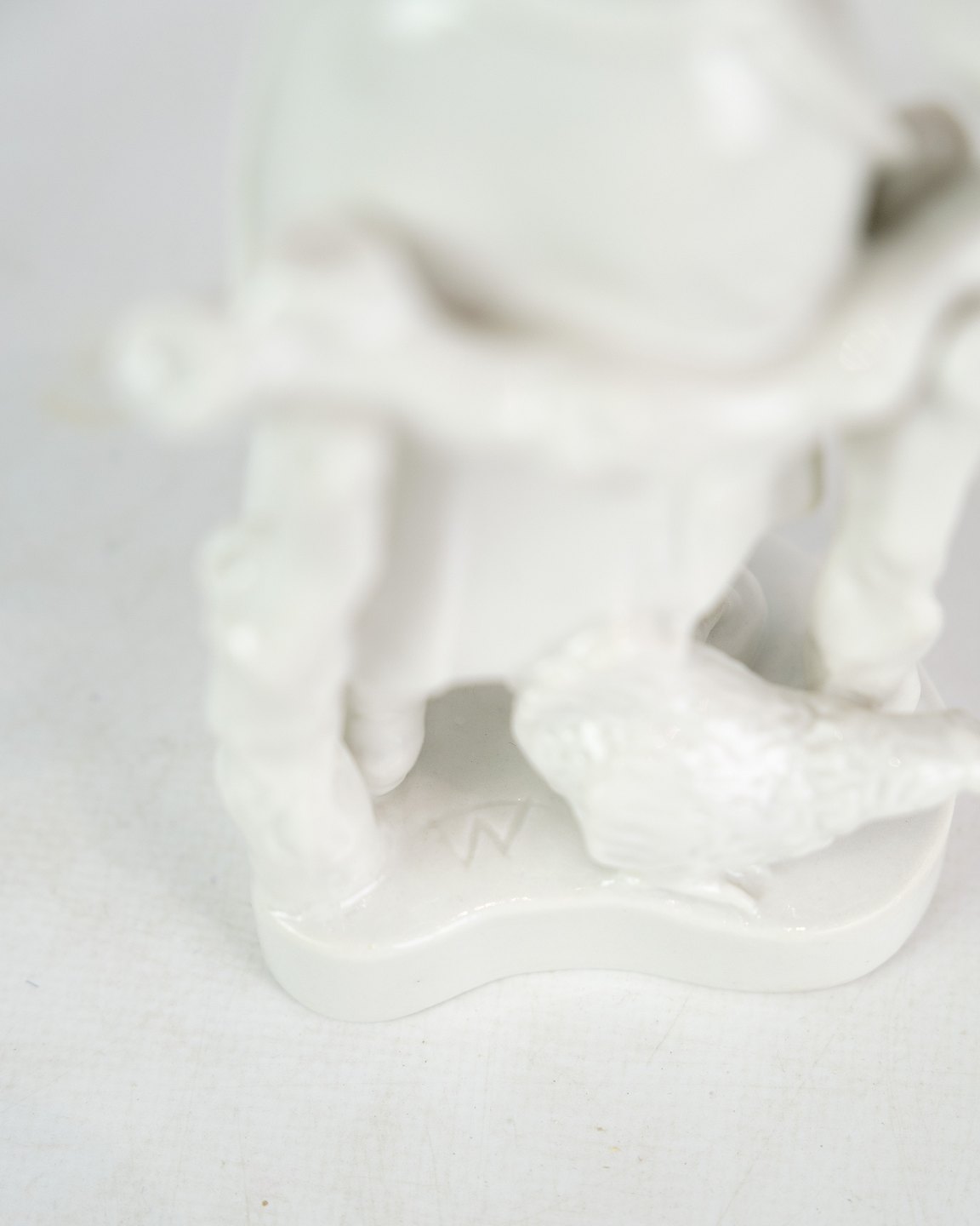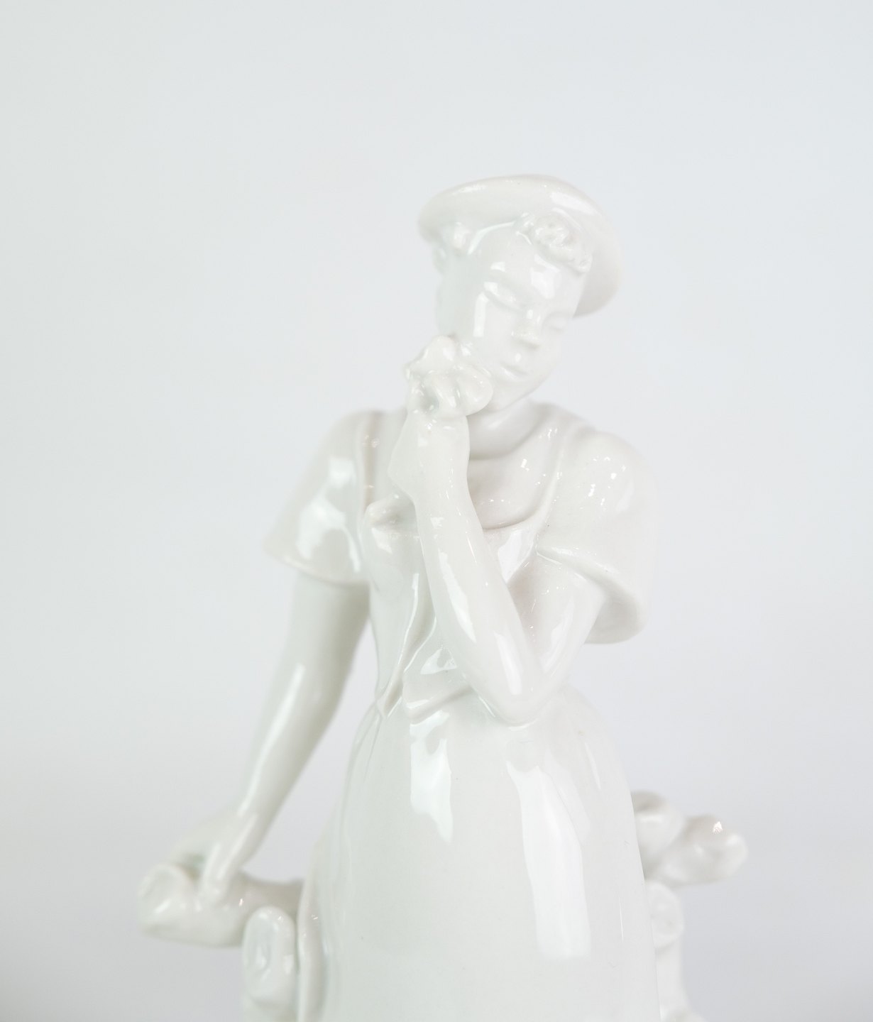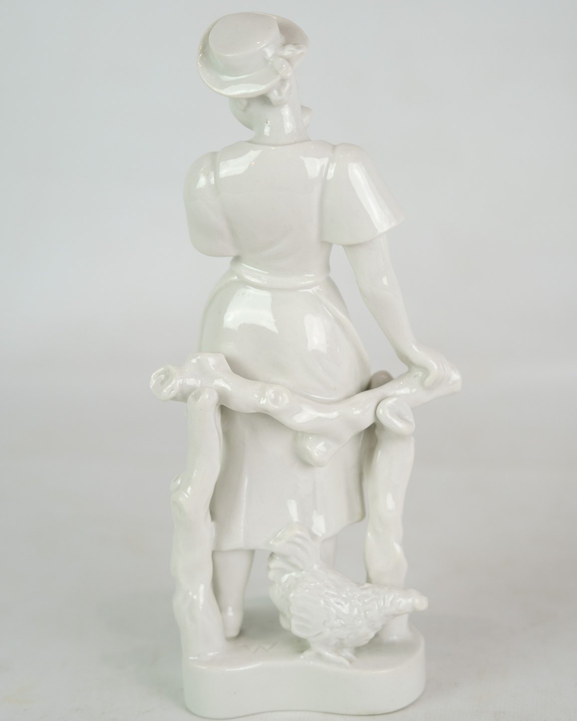 Kgl. figur fra Royal Copenhagen, model 4131, forestillende en pige med blomster og høns, skabt af Bode Willumsen i Blanc de Chine-stil, er et smukt eksempel på dansk keramisk kunst og design.