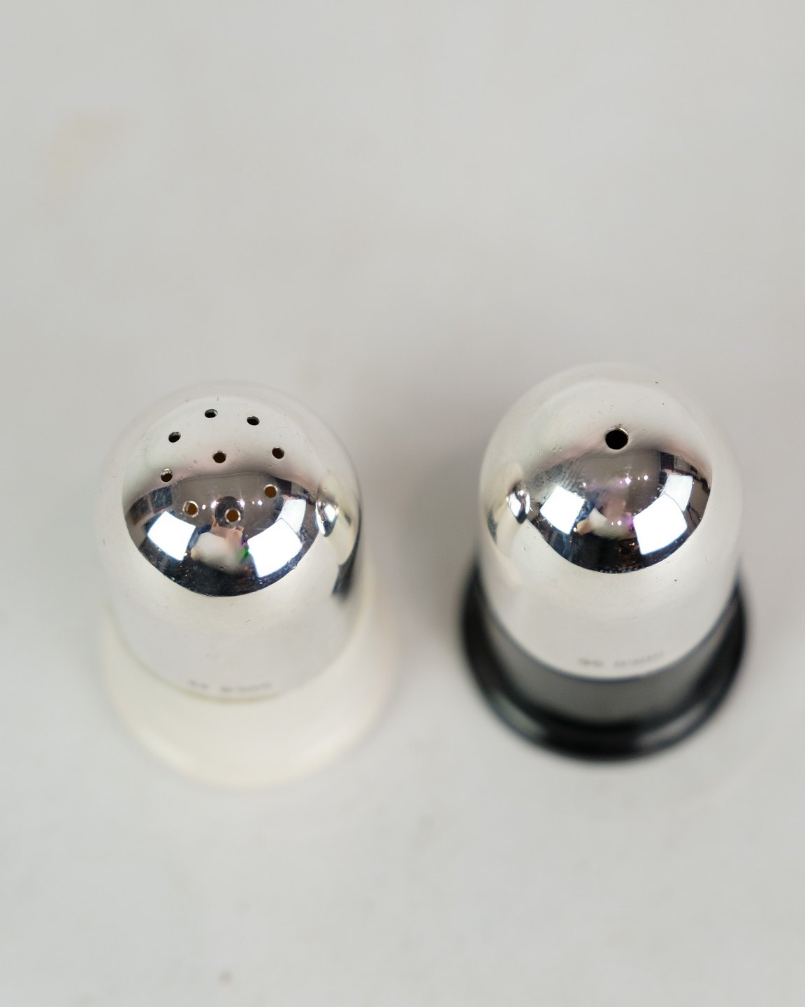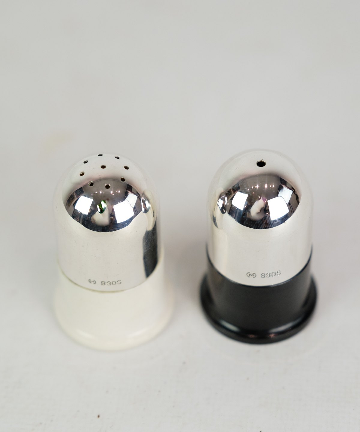 Salt og peber sæt, stemplet 830s med sort og hvid bund.