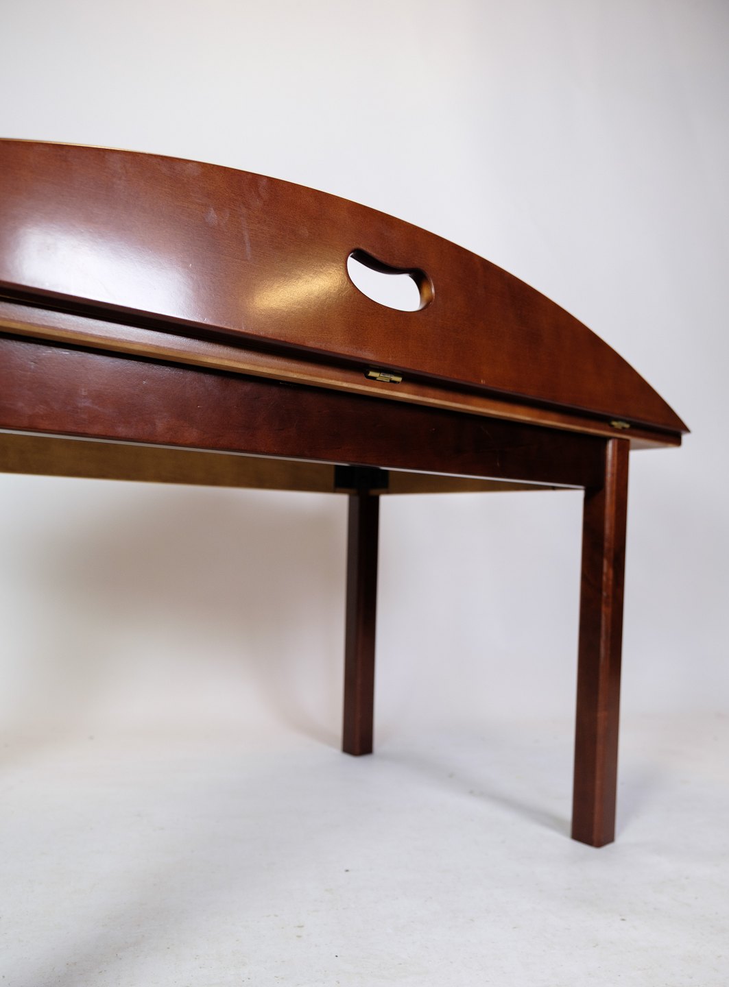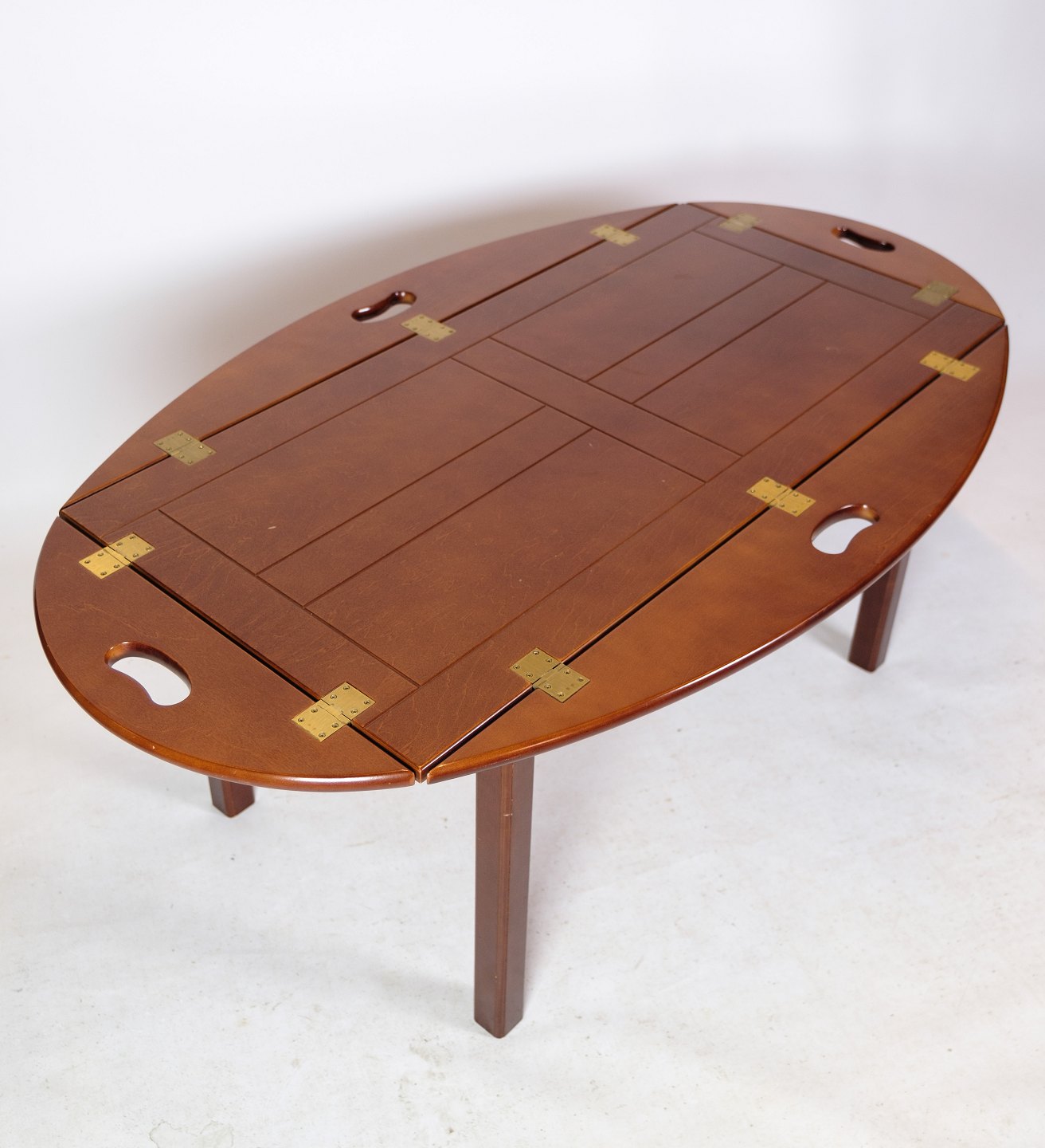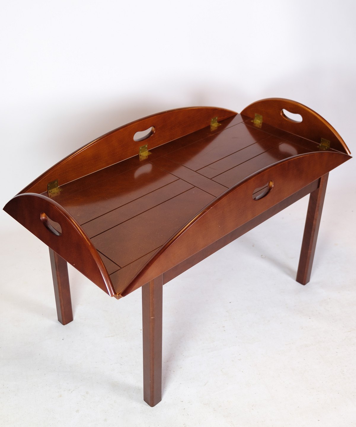 Butler sofa table in polished mahogany with brass fittings from around the 1940s.