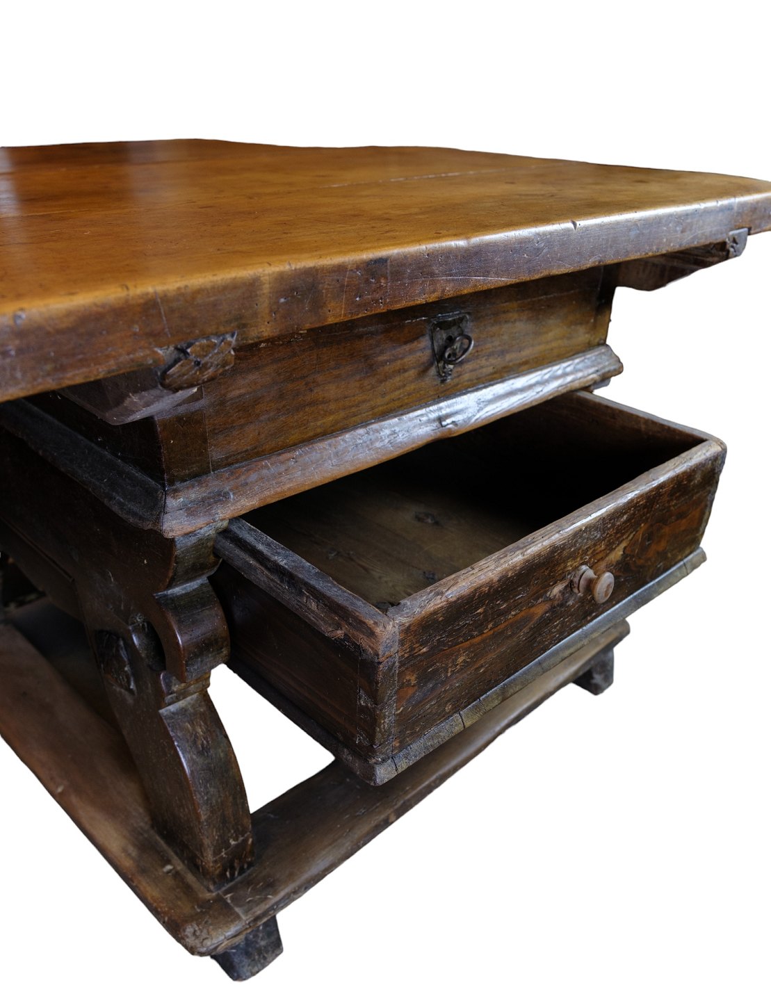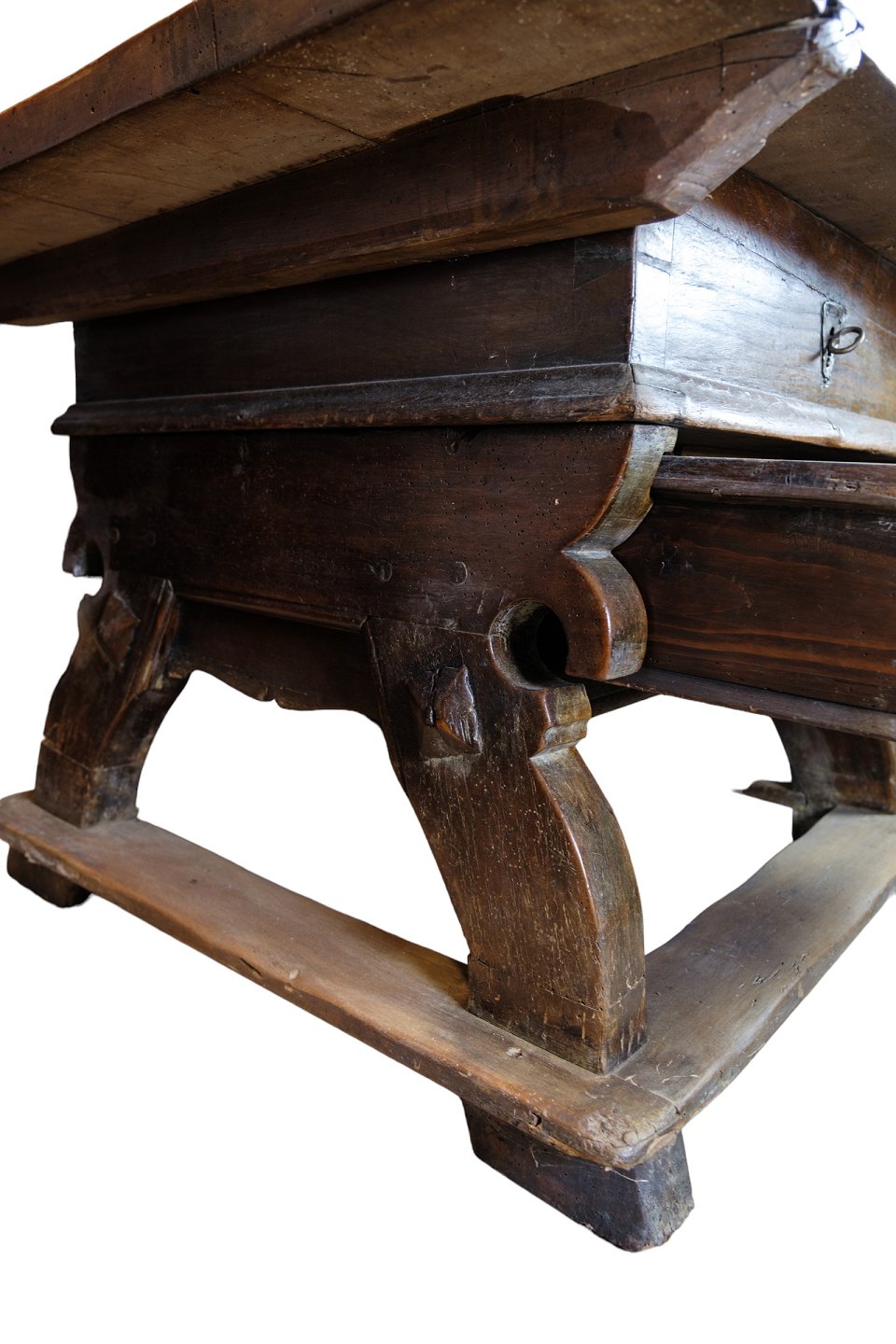 Please contact us for price informationSwiss cheese table in oak with a secret compartment under the tabletop hidden by a drawer from the 1720s.