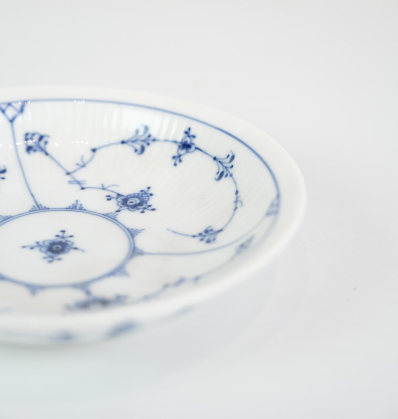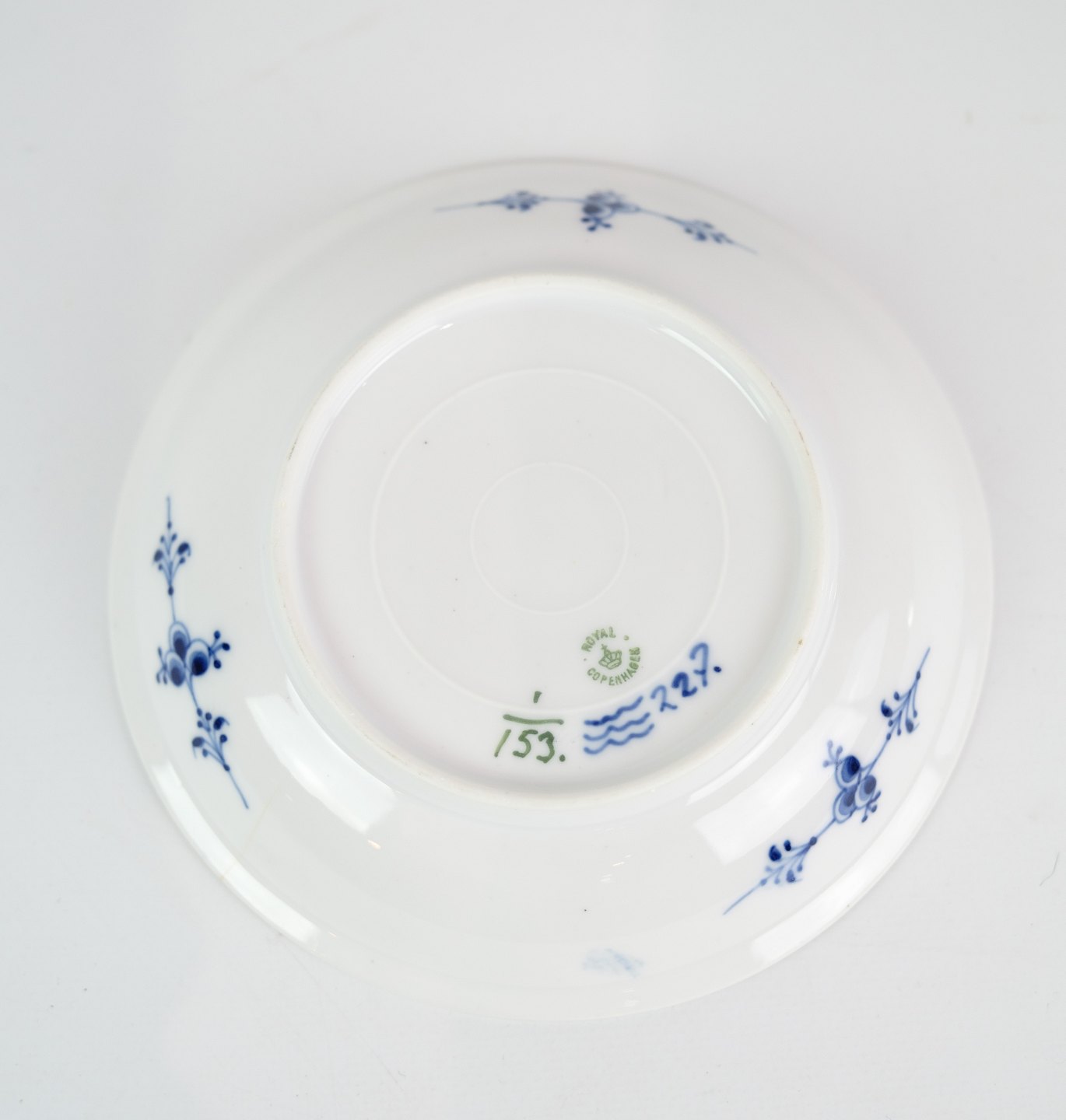 Royal Copenhagen Musselmalet Riflet asiet med nummer 153-1 er et smukt og tidløst stykke porcelæn, der tilføjer en subtil elegance til din borddækning.