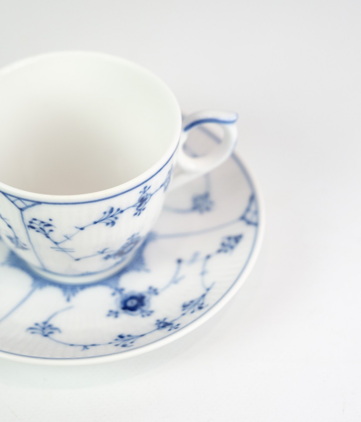 Royal Copenhagen Musselmalet Riflet is an iconic series of porcelain that has enchanted generations with its timeless design. The large coffee cup in this series, with decoration number 1/79 with accompanying saucer no. 79-82, which is a wonderful addition to any porcelain collection.