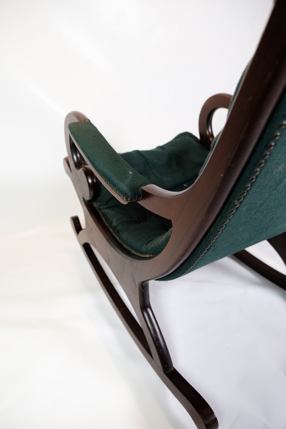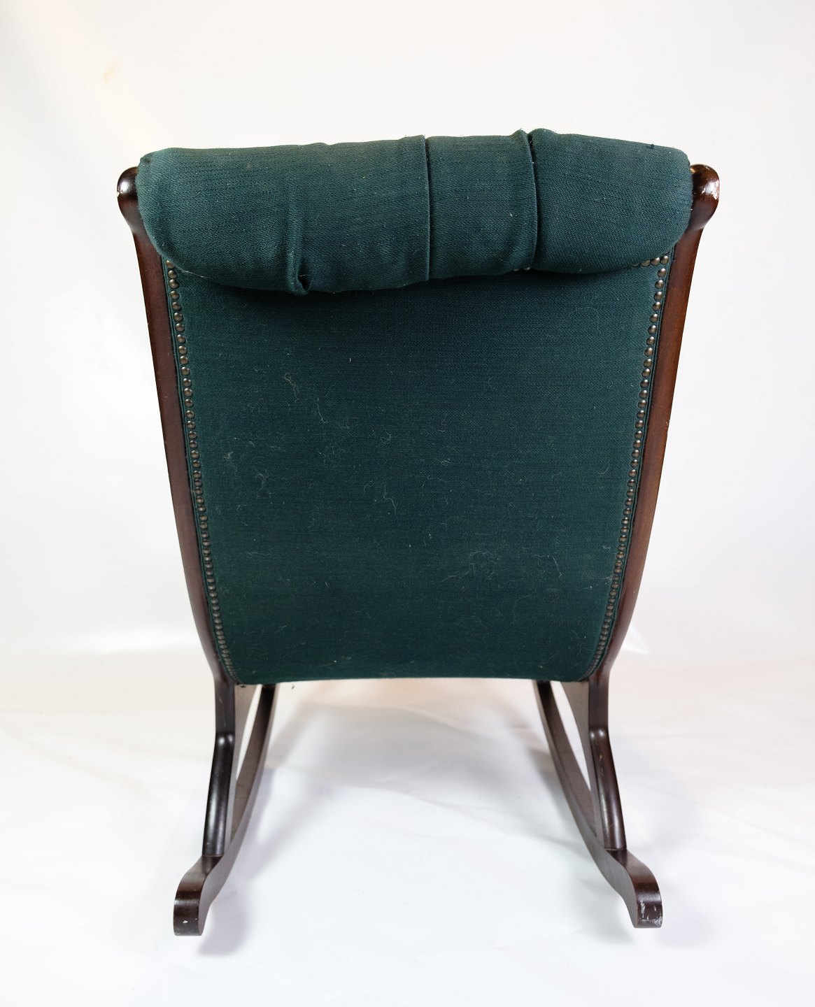Rocking chair with green wool tuft made in mahogany from around the 1930s.