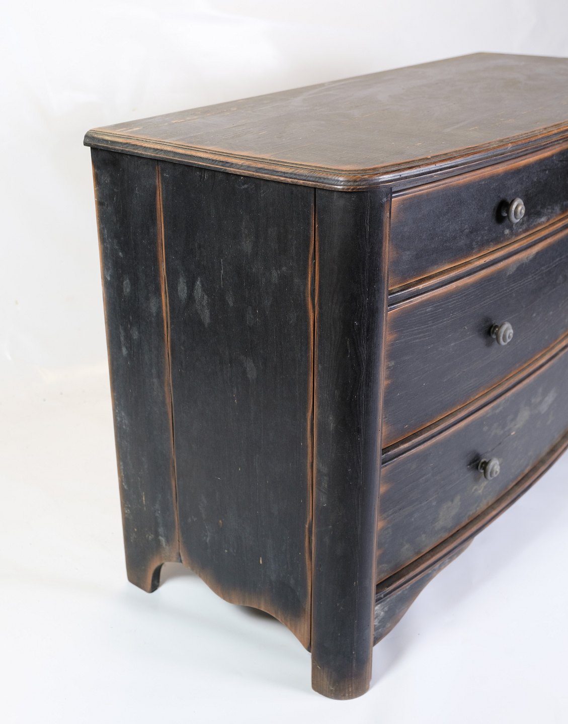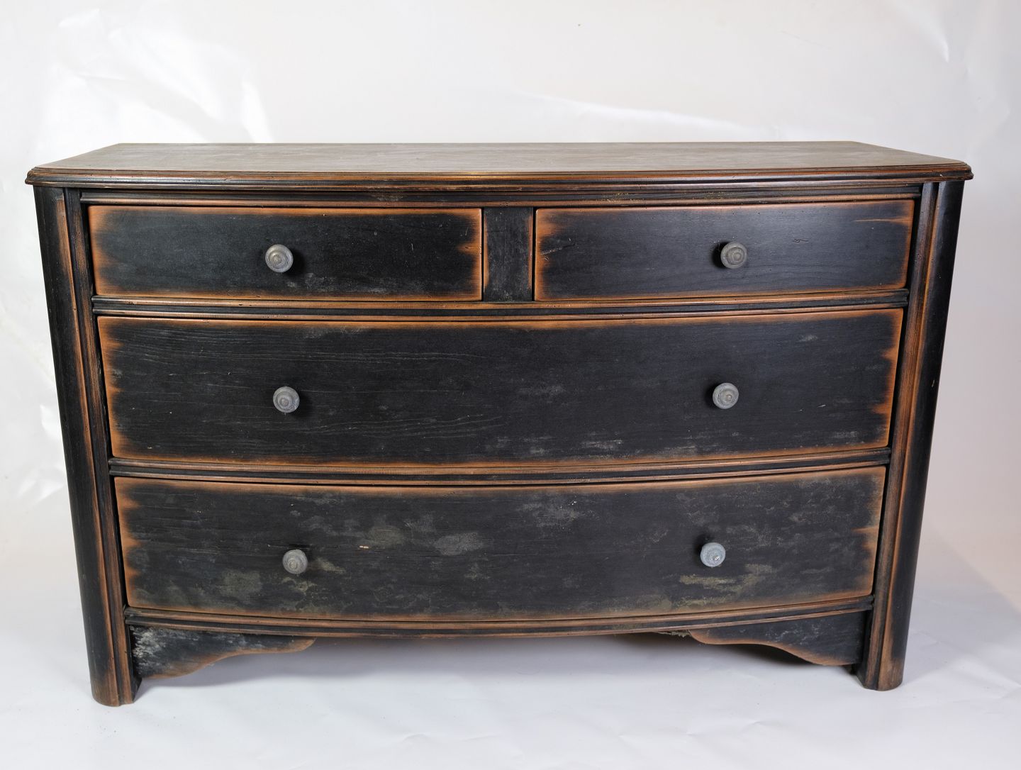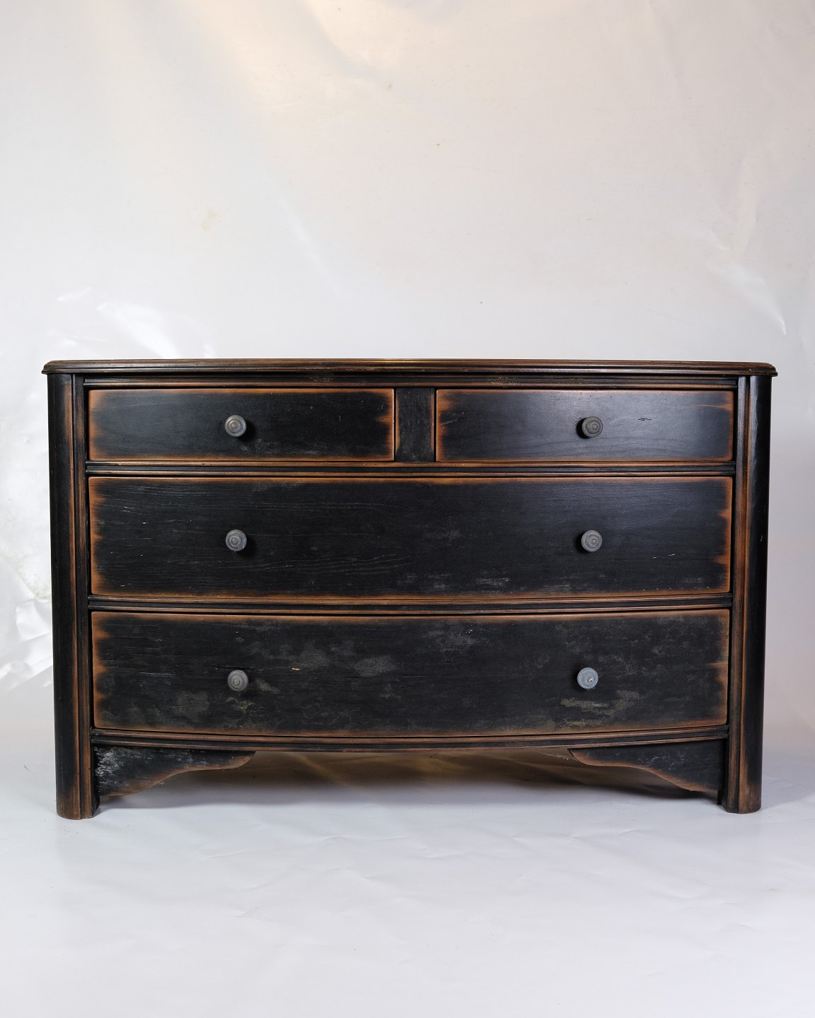 Sort Bemalet kommode med buende front og 4 skuffer med patina fra omkring 1950'erne.