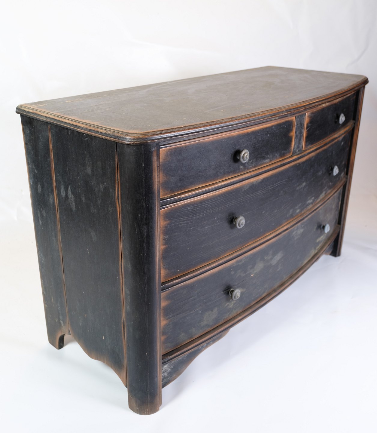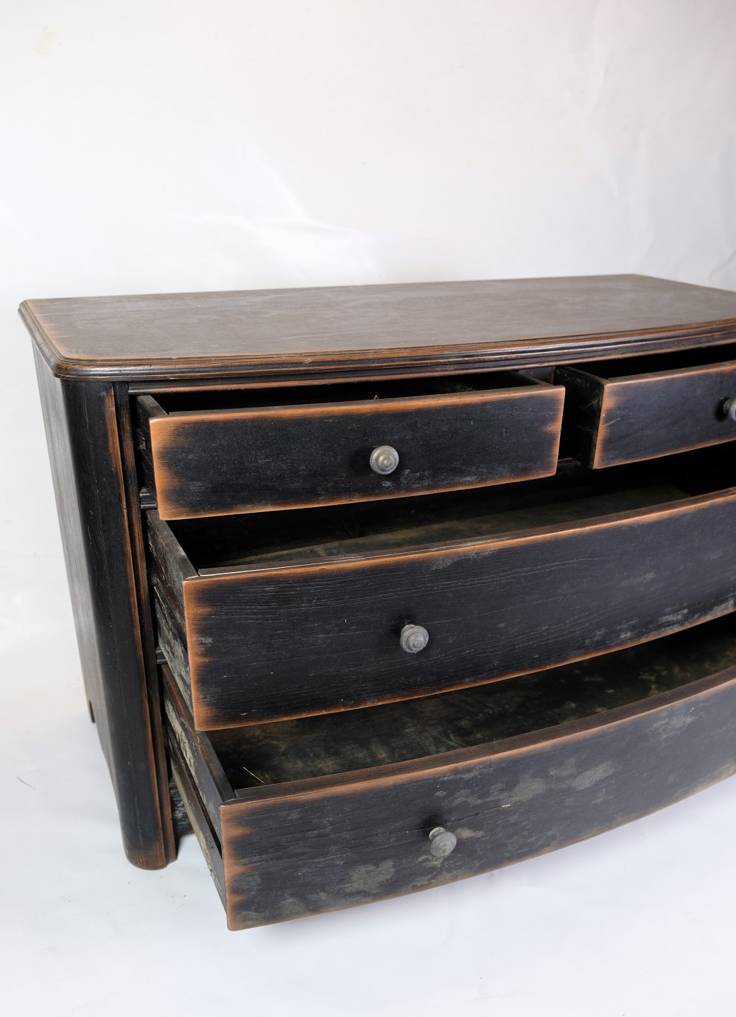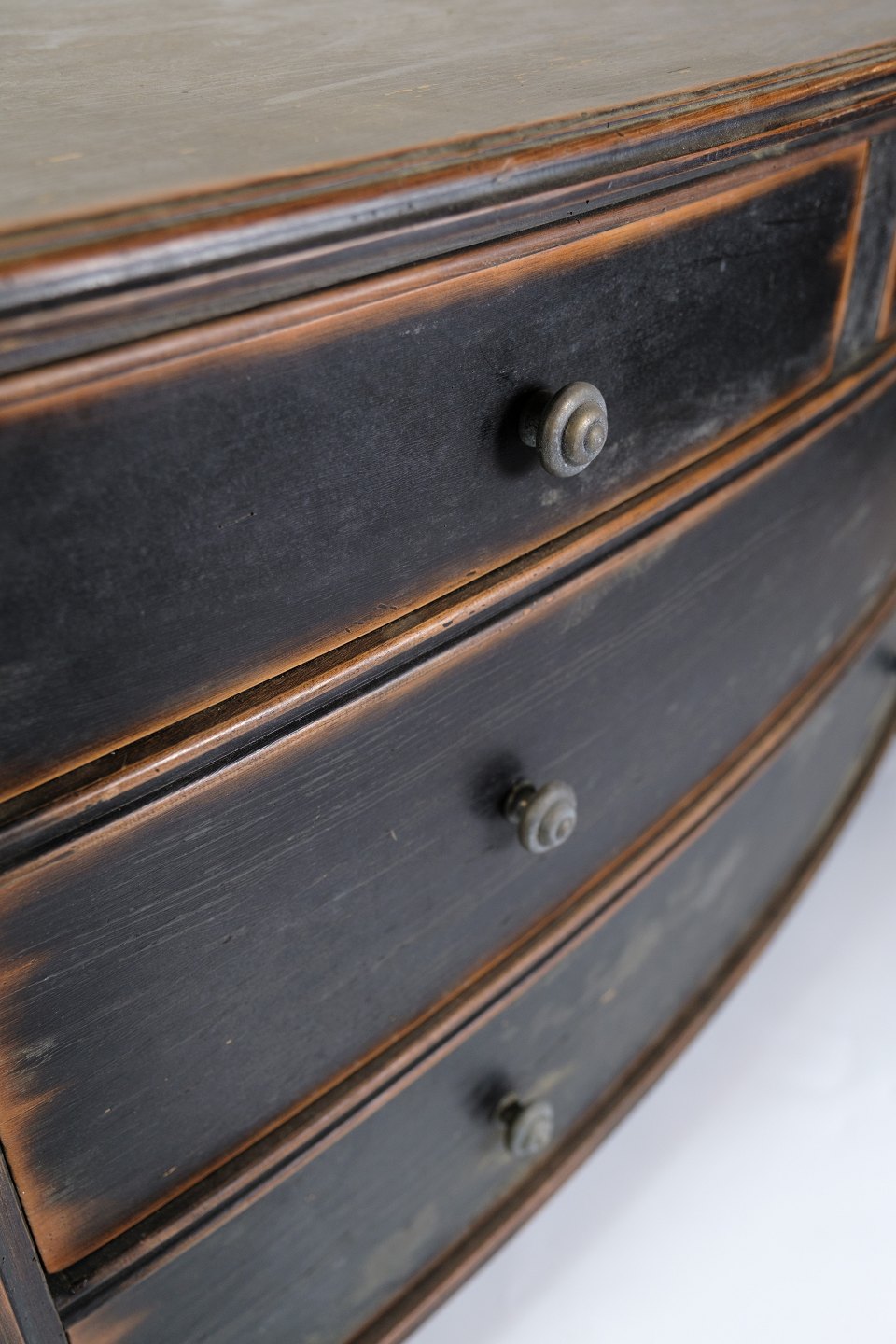 Sort Bemalet kommode med buende front og 4 skuffer med patina fra omkring 1950'erne.