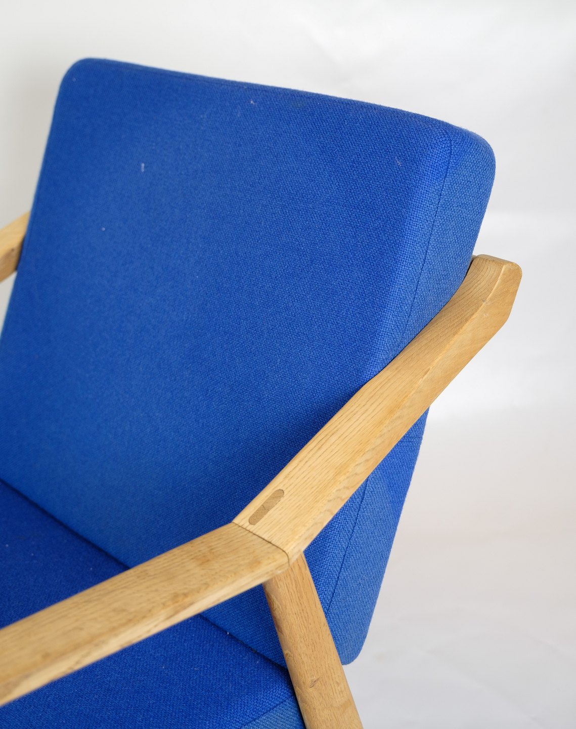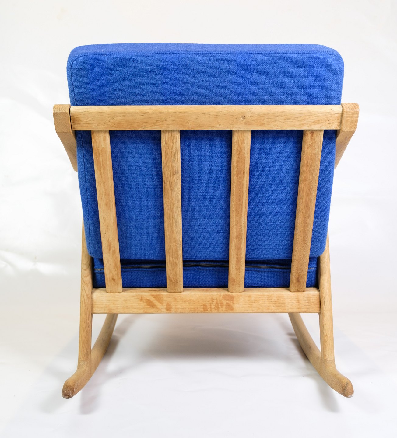 Med sit elegante og strømlinede design er gyngestolen et symbol på den skandinaviske modernismes tidløse stil. Den er konstrueret af robust egetræ, hvilket giver både styrke og en naturlig skønhed til møblet.