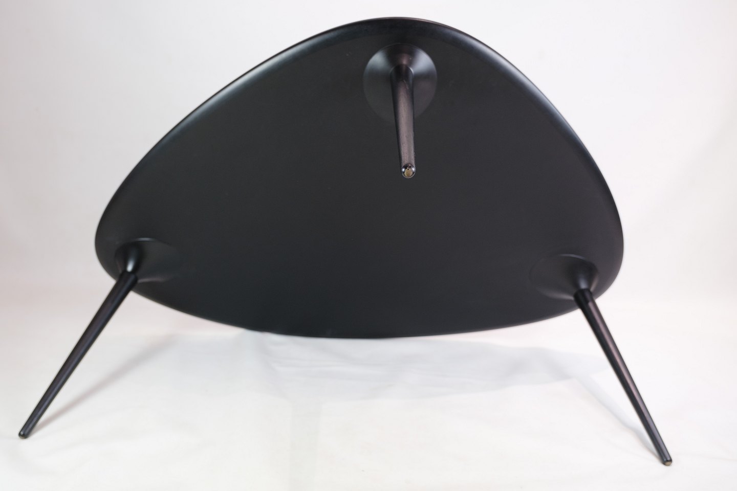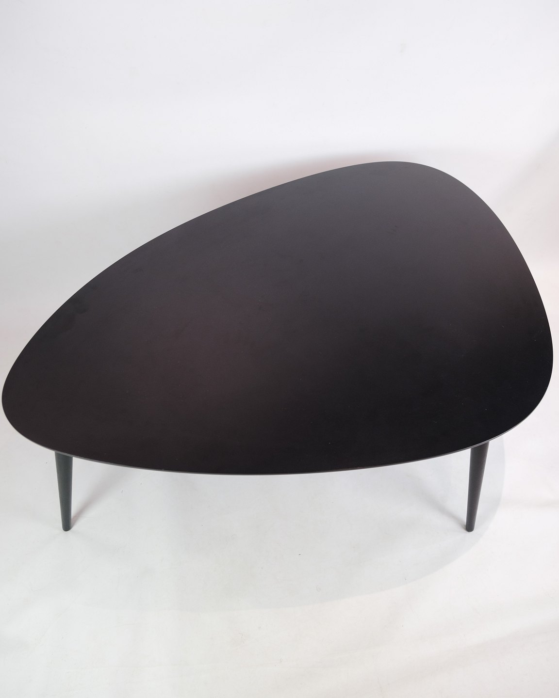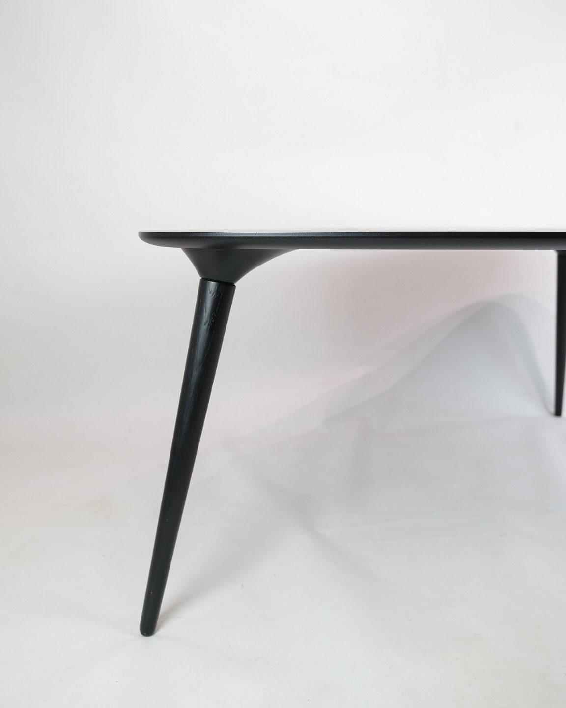 The coffee table with black laminate and oak legs, designed by Thomas Pedersen and produced by Fredericia Furniture, is an elegant combination of modern aesthetics and craftsmanship. This table has been created with a focus on both function and style.