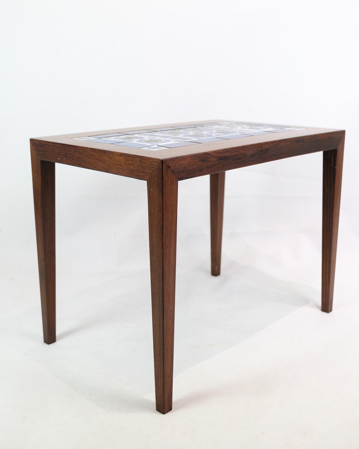 Set of side tables, model 34A, in rosewood designed by Severin Hansen with tiles from the Royal Porcelain Factory, produced around the 1960s. These side tables represent a beautiful combination of quality materials and Danish design heritage. The rosewood gives a warm and luxurious feel, while the tiles from the Royal Porcelain Factory add a touch of elegance. This piece of furniture is not only functional, but also a period piece of art that expresses the design of that era. A unique collector's item for those who appreciate vintage furniture art and Danish design history.