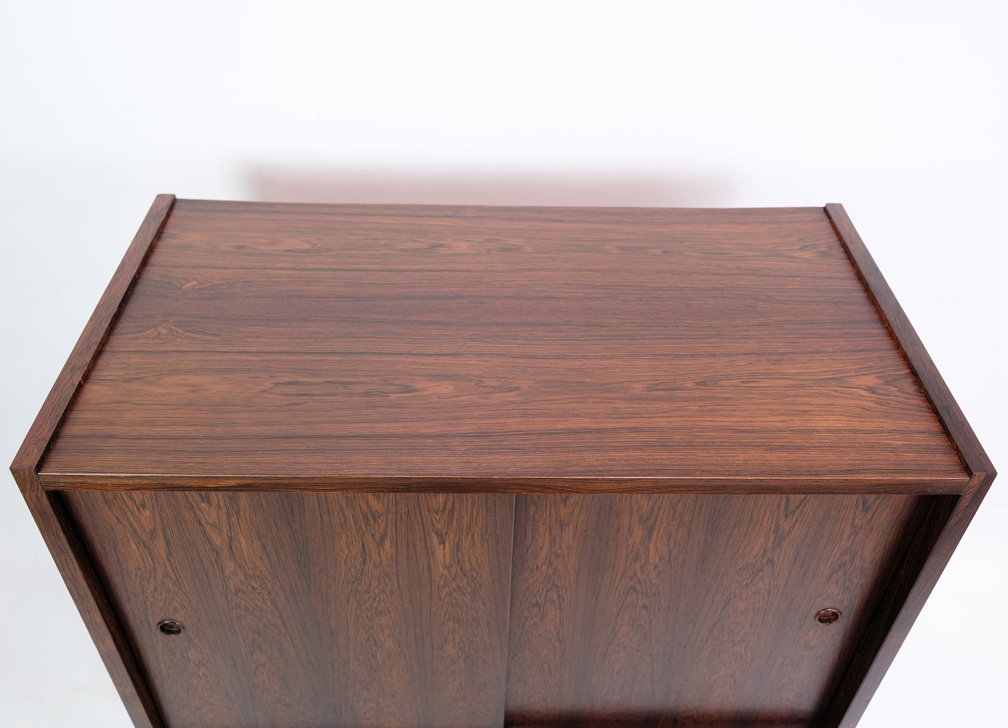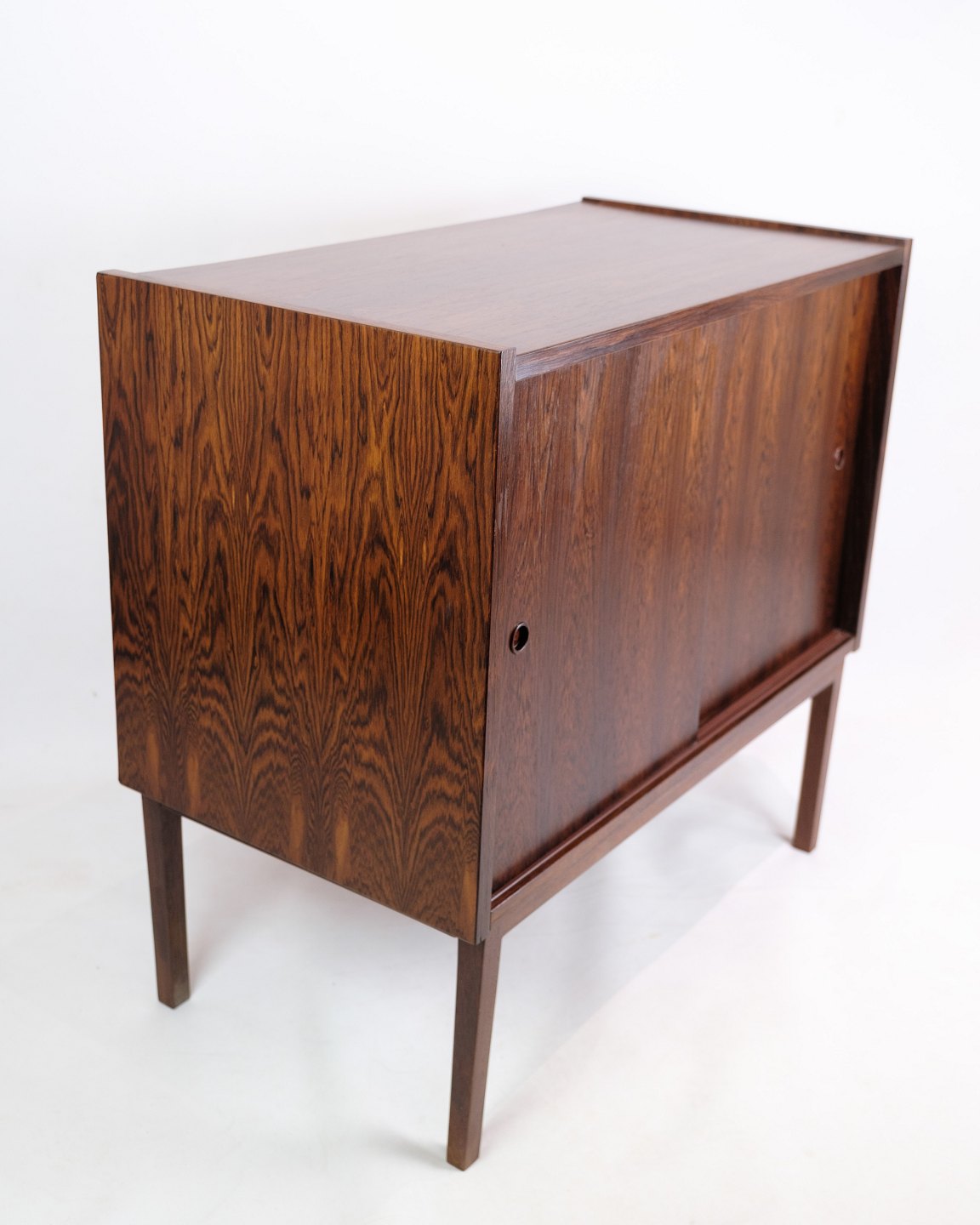 SoldThe small rosewood sideboard, of Danish design and from the 1960s, represents an era of stylish and functional furniture design. The rosewood, with its characteristic dark color and beautiful veins, gives the sideboard a unique and luxurious appearance.