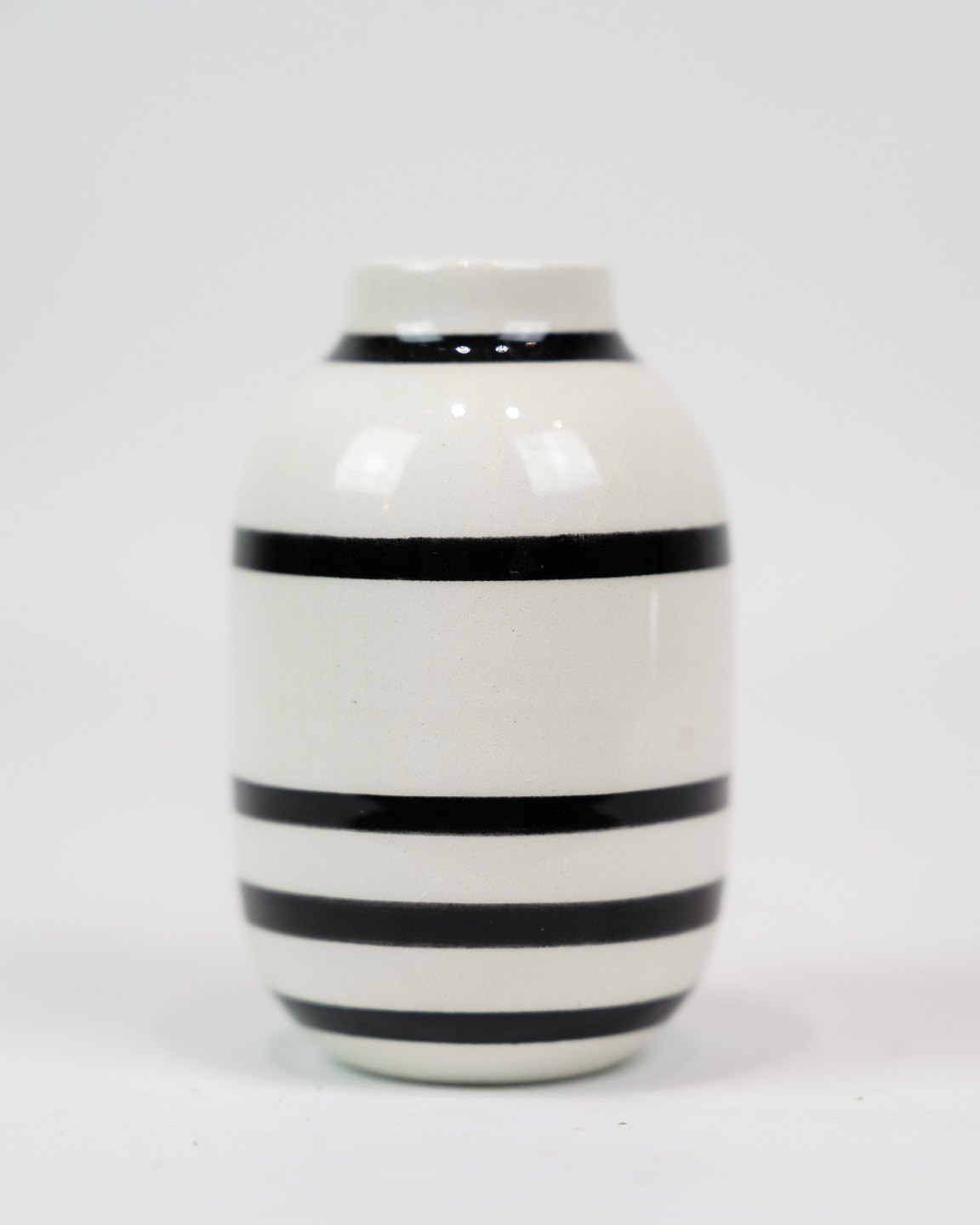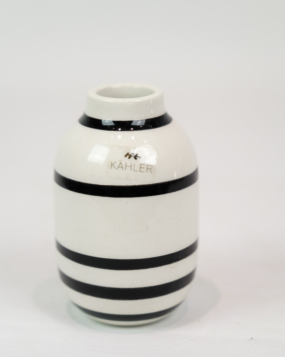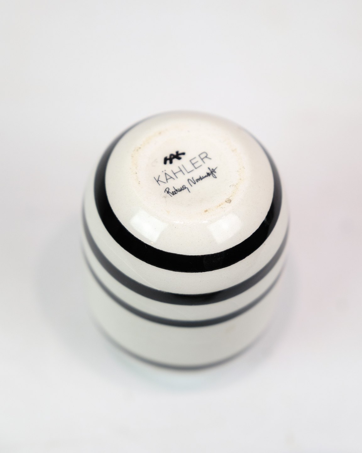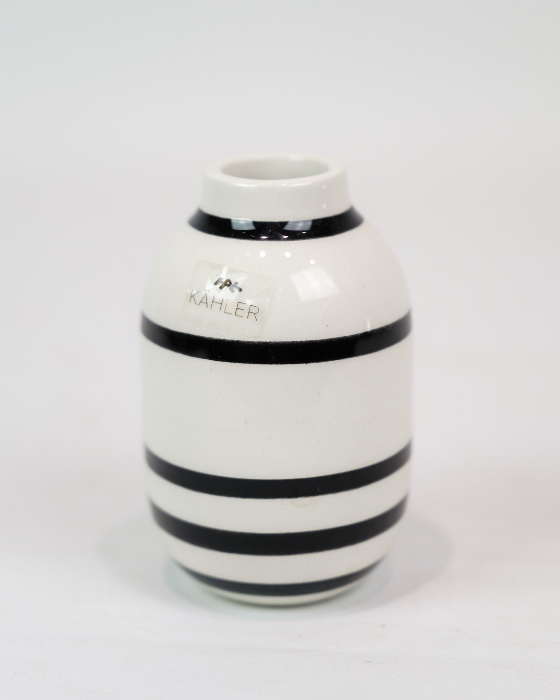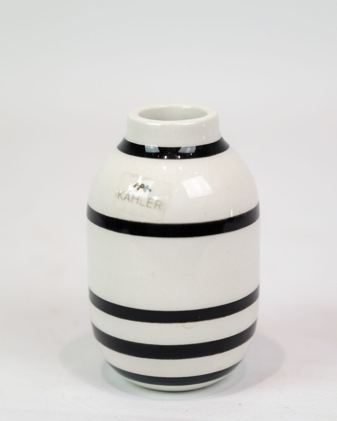 SolgtKähler er en uundværlig favorit i utallige hjem takket være sit klassiske udseende og moderne design. Denne smukke vase, der er en del af en serie, passer perfekt til det skandinaviske hjem med sit enkle, men alligevel iøjnefaldende udtryk. Hver Kähler-vase i serien er håndmalet, hvilket betyder, at ingen to er helt ens. Den unikke charme og personlighed, der følger med variationerne i farve og bredde på striberne, gør hver vase til et kunstværk i sig selv. Tilføj et strejf af elegance og individualitet til dit hjem med en Kähler-vase, der vil pryde ethvert rum med sin skønhed og unikke karakter.