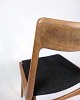 The upholstered seat and backrest in black leather add a luxurious contrast to the teak frame. The leather not only offers a comfortable sitting experience, but it is also known for its durability and ease of maintenance.