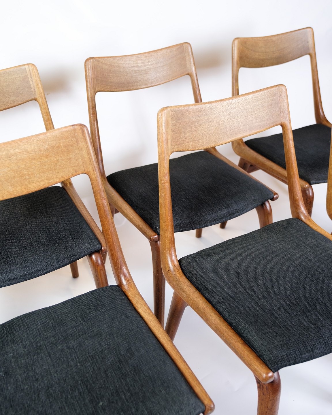 Alfred Christensen's Boomerang Chairs are known for their distinctive design that embraces both functionality and aesthetics. Their clean lines and streamlined shape make them a timeless feature in any dining room environment, while also radiating a unique vintage charm. These chairs are a testament to the unique heritage of Danish furniture art.
