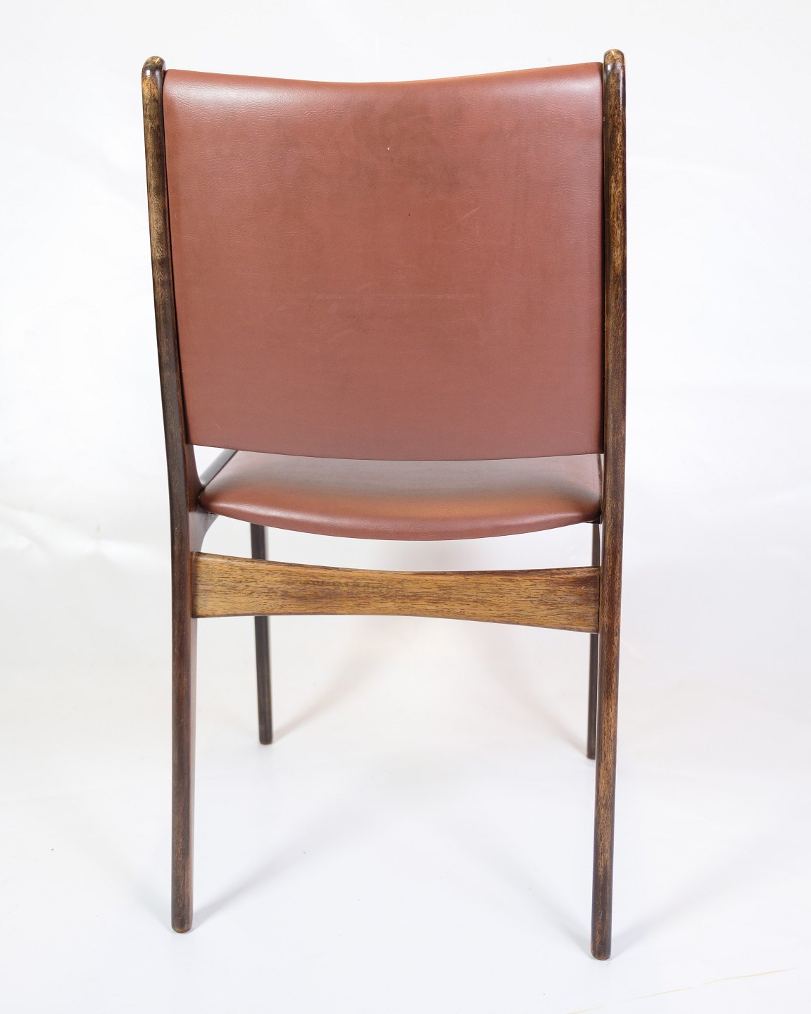 SoldThis set of four dining table chairs combines timeless elegance with high functionality. Made from solid rosewood and upholstered in cognac leather, these chairs offer a comfortable seating experience and a beautiful aesthetic for any dining area. Their slim and ergonomic design makes them ideal for long meals and cozy gatherings with family and friends.