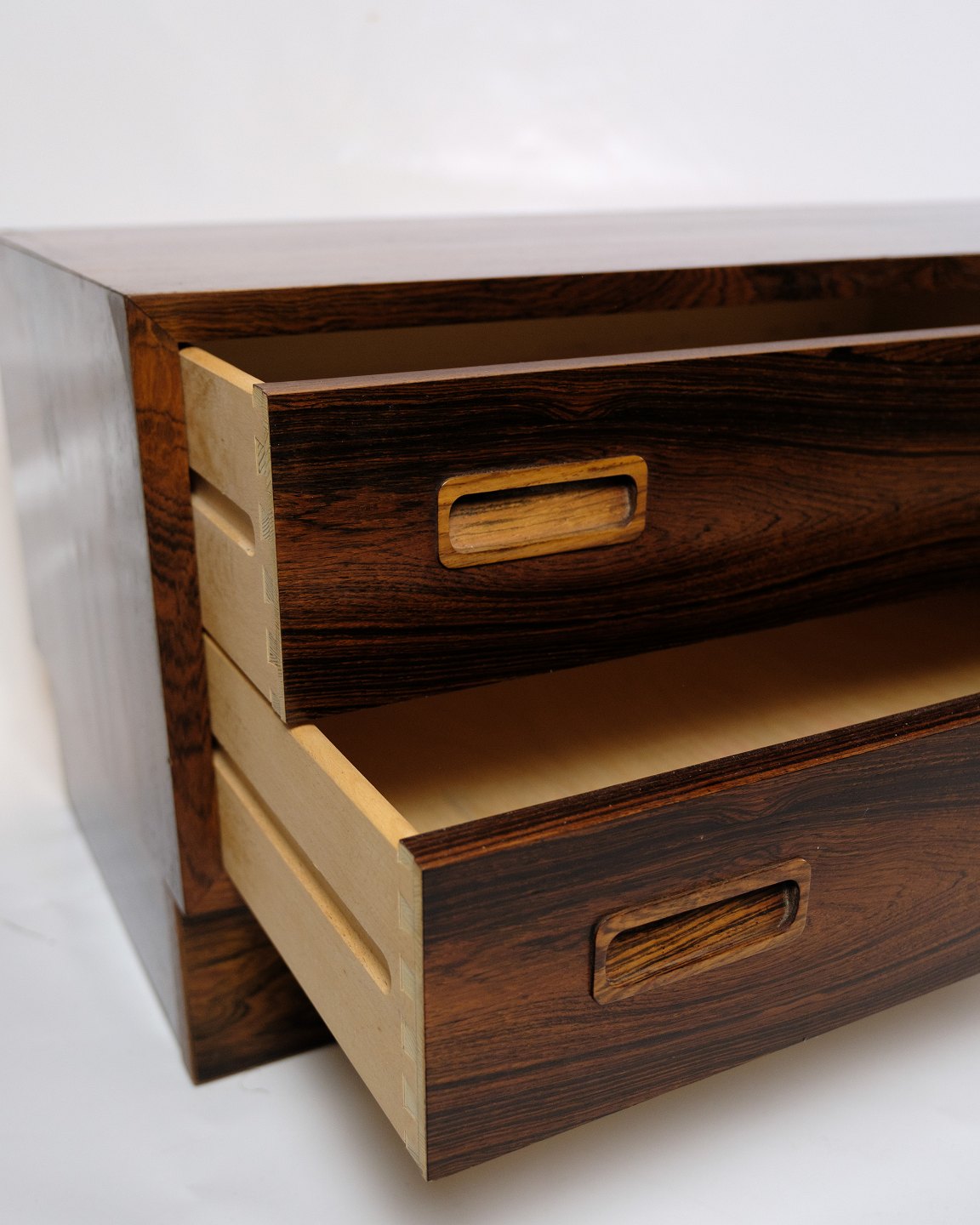 SoldThis chest of drawers is a brilliant example of Danish design from the 1960s, created by Hundevad Møbelfabrik. Crafted from rosewood, this chest of drawers exudes a timeless elegance and simplicity that fits perfectly with any decor.