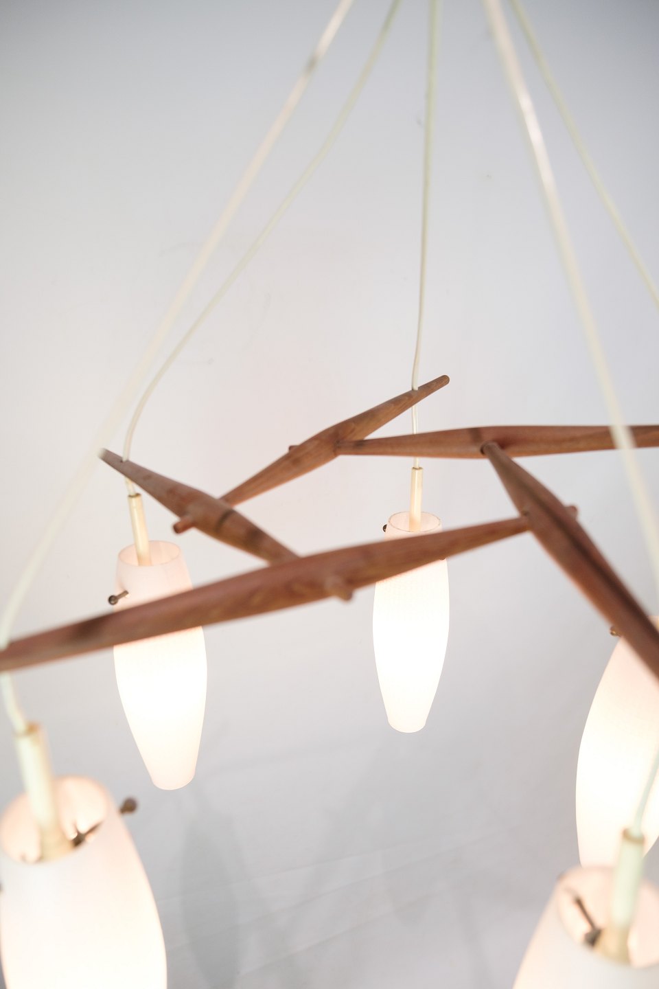The warm color of the teak wood and the soft lighting of the opal glass create a pleasant atmosphere in any room. This combination of materials gives the lamp an organic look that fits perfectly with both modern and retro interiors.