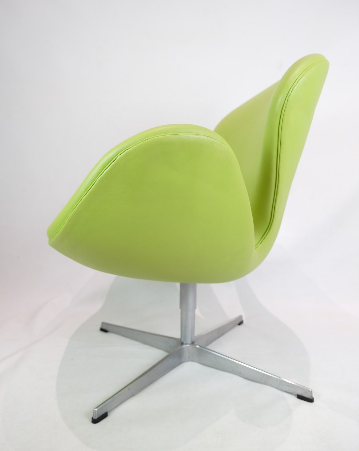 This special edition of the 2007 "Swan" presents a lively and bold choice of lime green leather that adds a freshness to any decor. Arne Jacobsen's vision of creating furniture that is both beautiful and comfortable is fully realized in this chair.