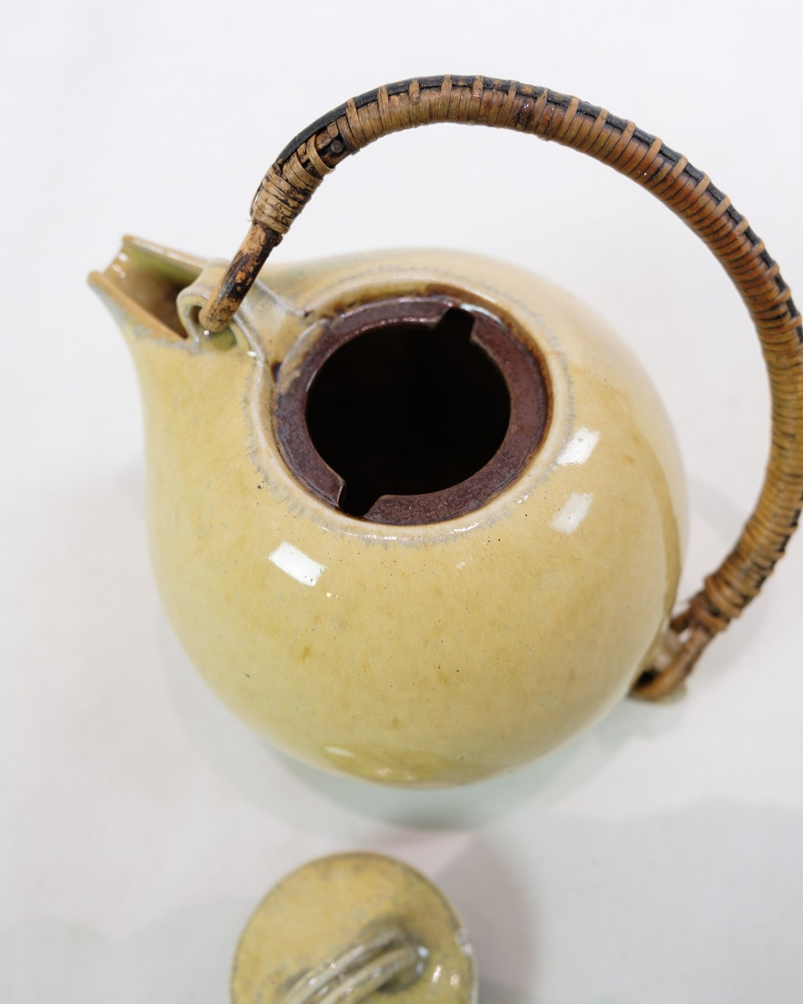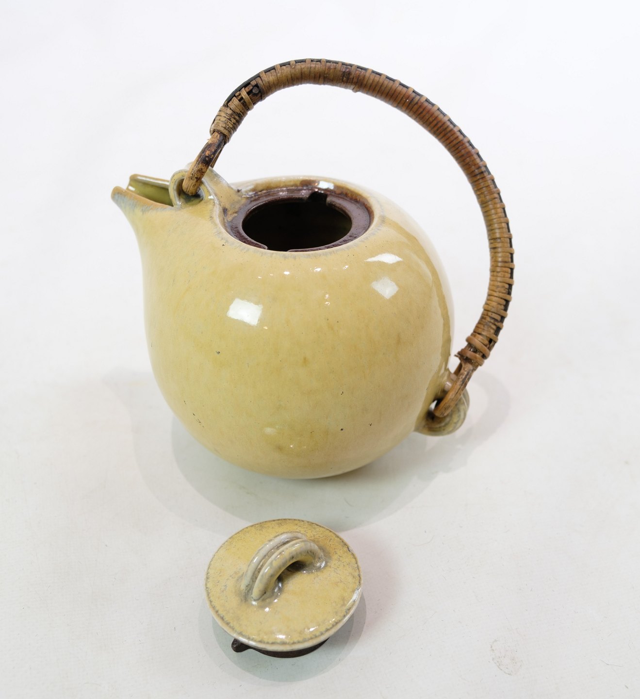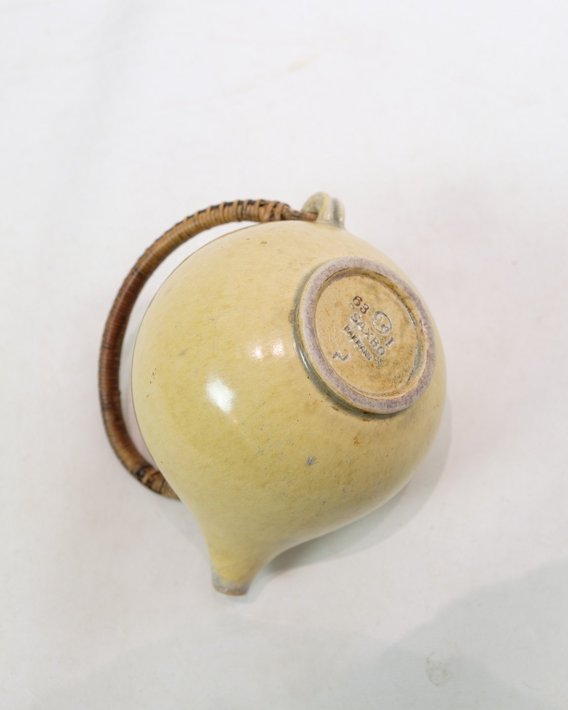 SoldThis teapot is a beautiful example of Danish ceramic craftsmanship, designed by Eva Stæhr Nielsen and produced by Saxbo. Made of stoneware/ceramic, the teapot is beautifully glazed with a light yellowish color that adds a warm and inviting feel to the table.