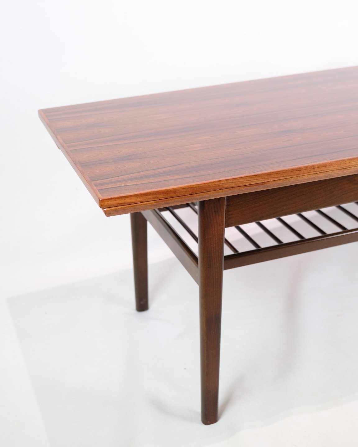 This coffee table is an impressive piece of furniture art that exudes both elegance and functionality. Made of rosewood, it presents a high point in Danish furniture design.