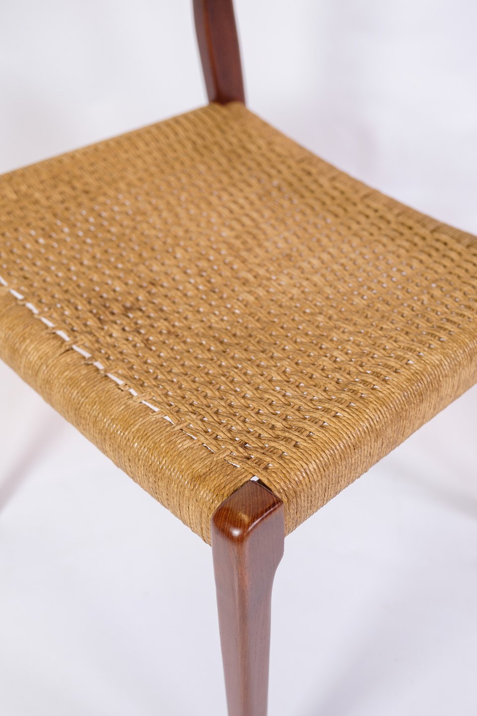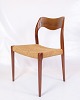 Dette sæt af fire spisestuestole, model 71, designet af Niels Otto Møller i 1960'erne, er et fremragende eksempel på dansk mid-century modern design. Stolene kombinerer teaktræets naturlige skønhed med papirflet, hvilket skaber en elegant og tidløs æstetik.