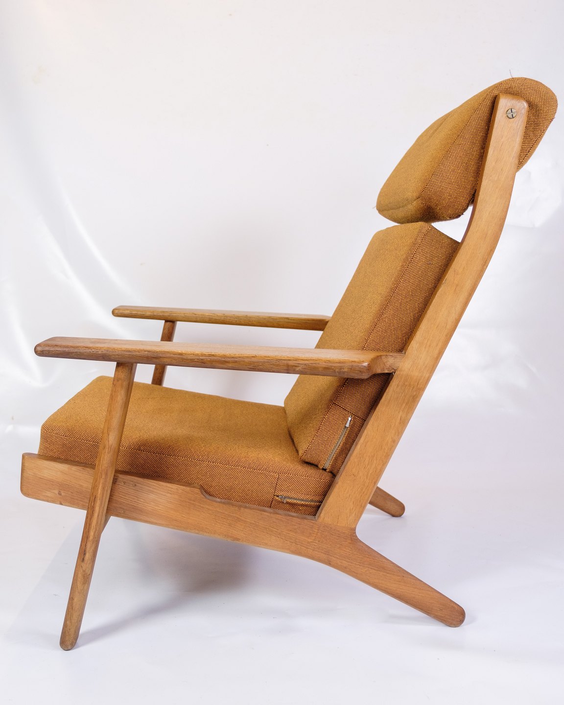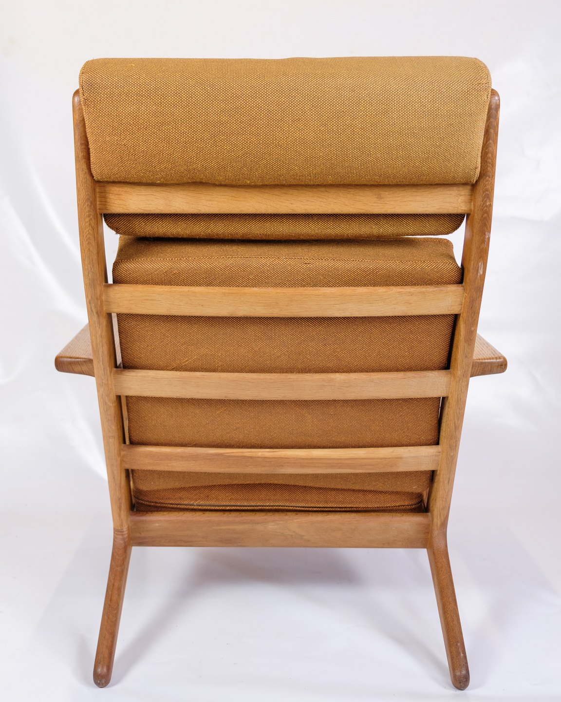 Please contact us for price informationThis armchair, model GE290A with high back, designed by Hans J. Wegner and manufactured by Getama in the 1960s, is an excellent example of Danish mid-century modern design. The chair combines solid oak with yellow fabric, creating an elegant and comfortable piece of furniture that reflects Wegner's unique design philosophy and craftsmanship.