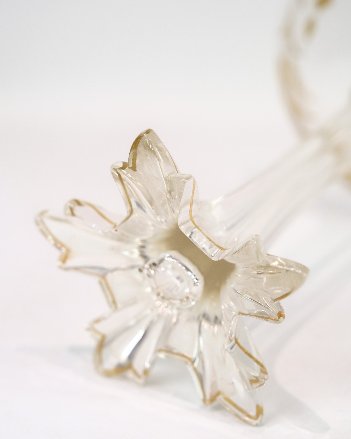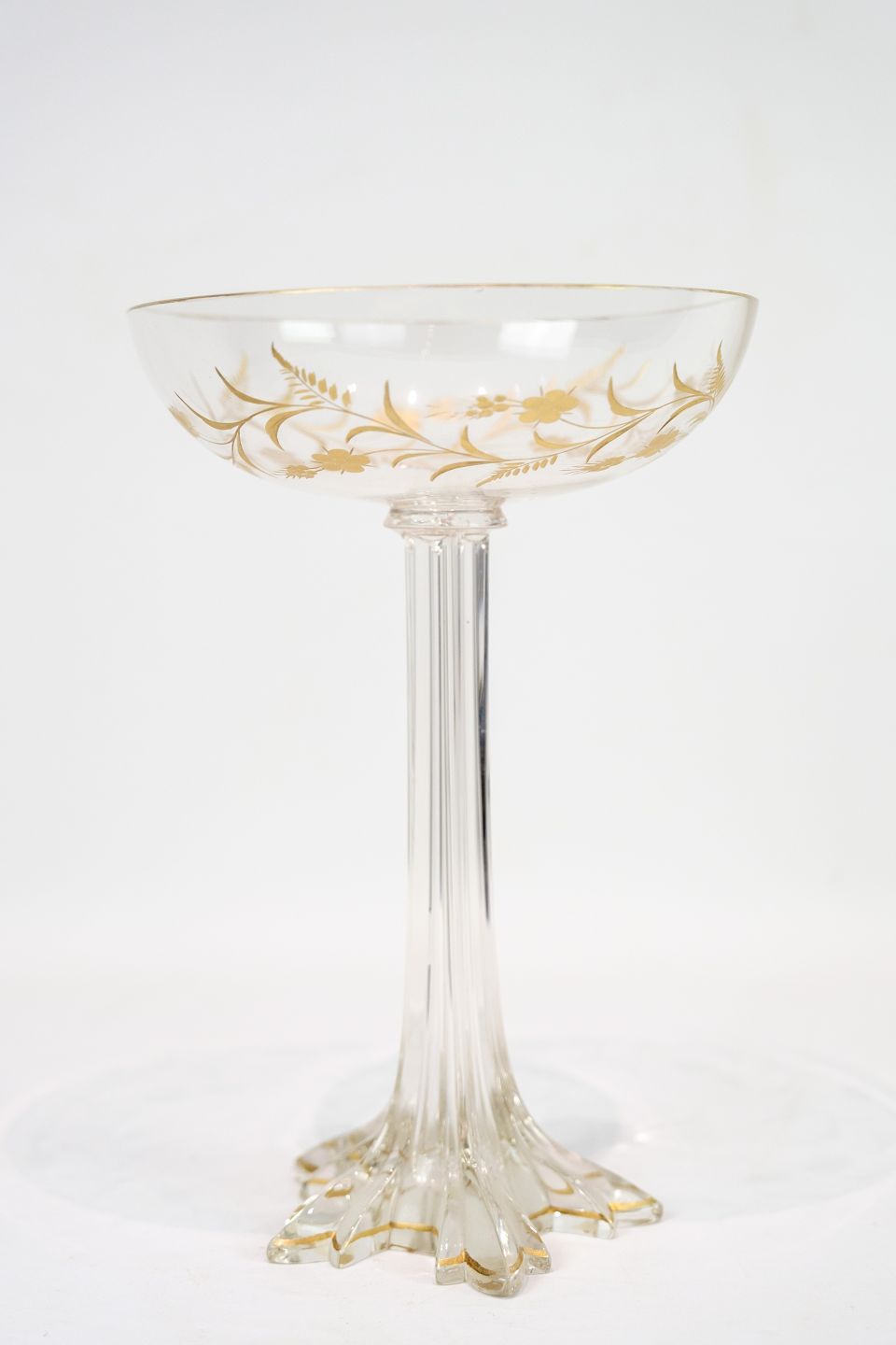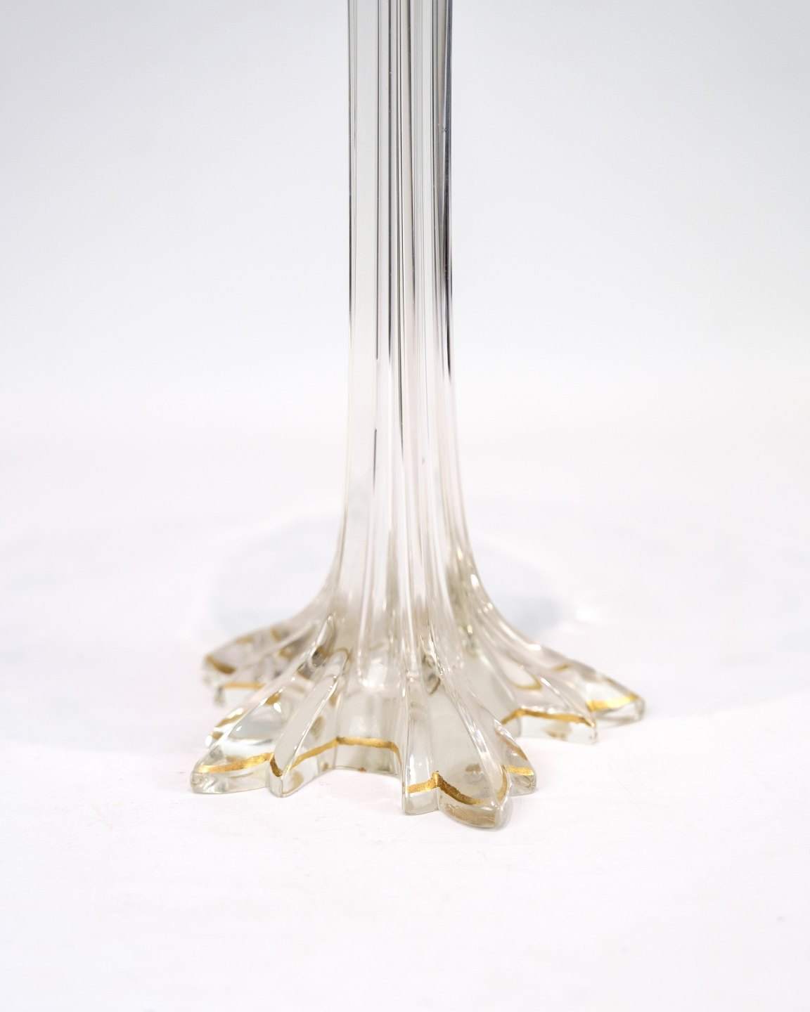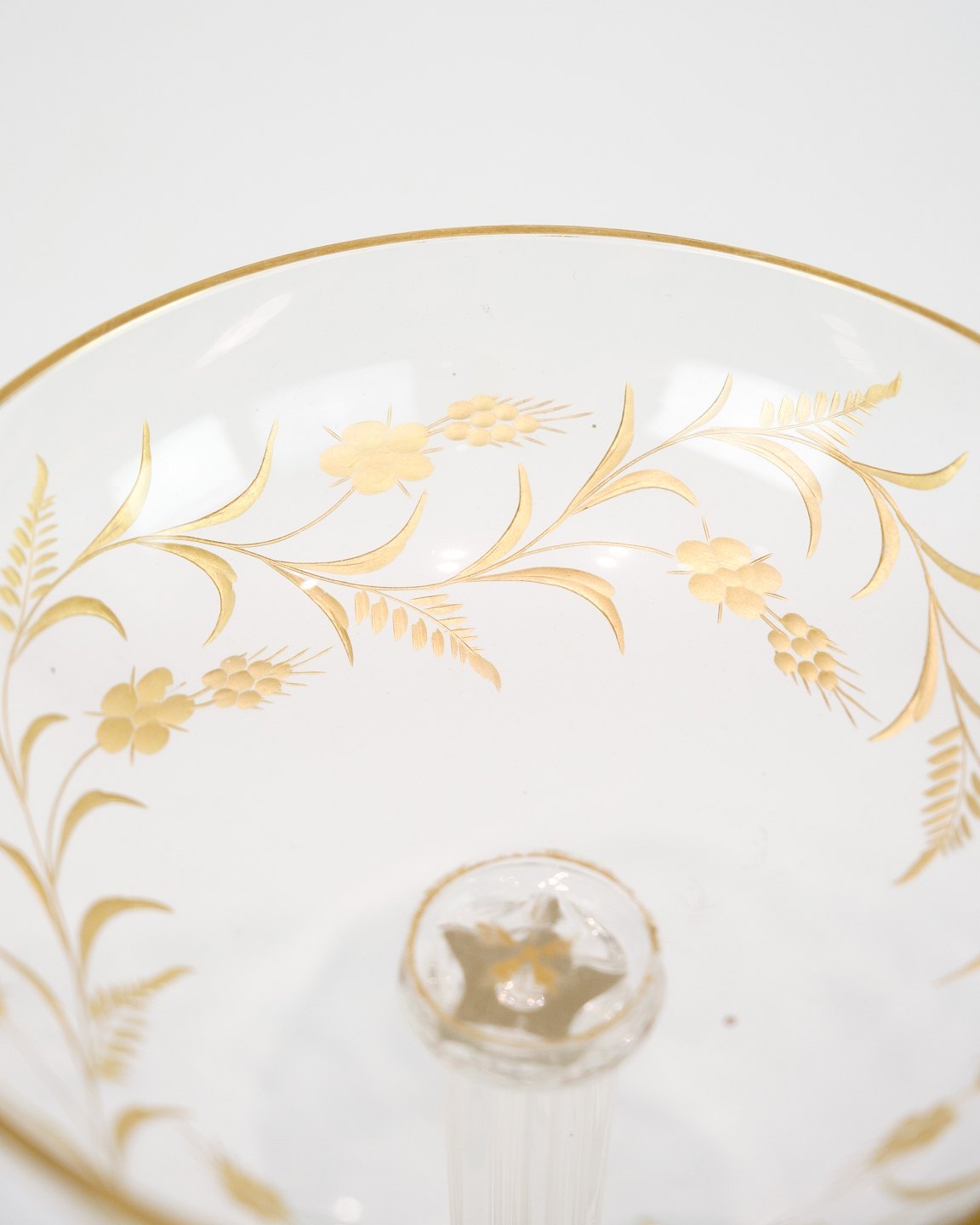 Glass top decorated with patterned gold and designed in a unique way from around the 1890s. Is in very good condition.