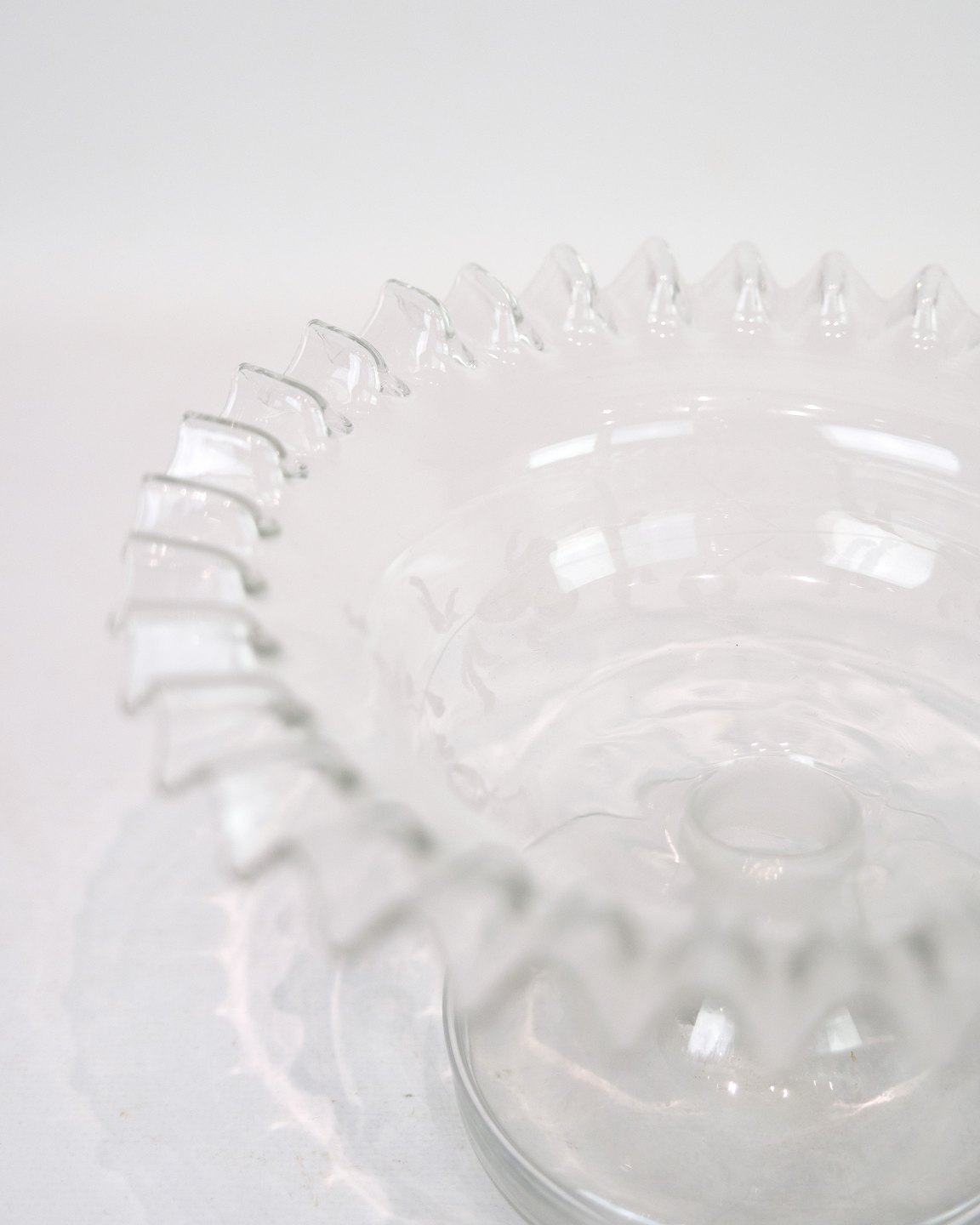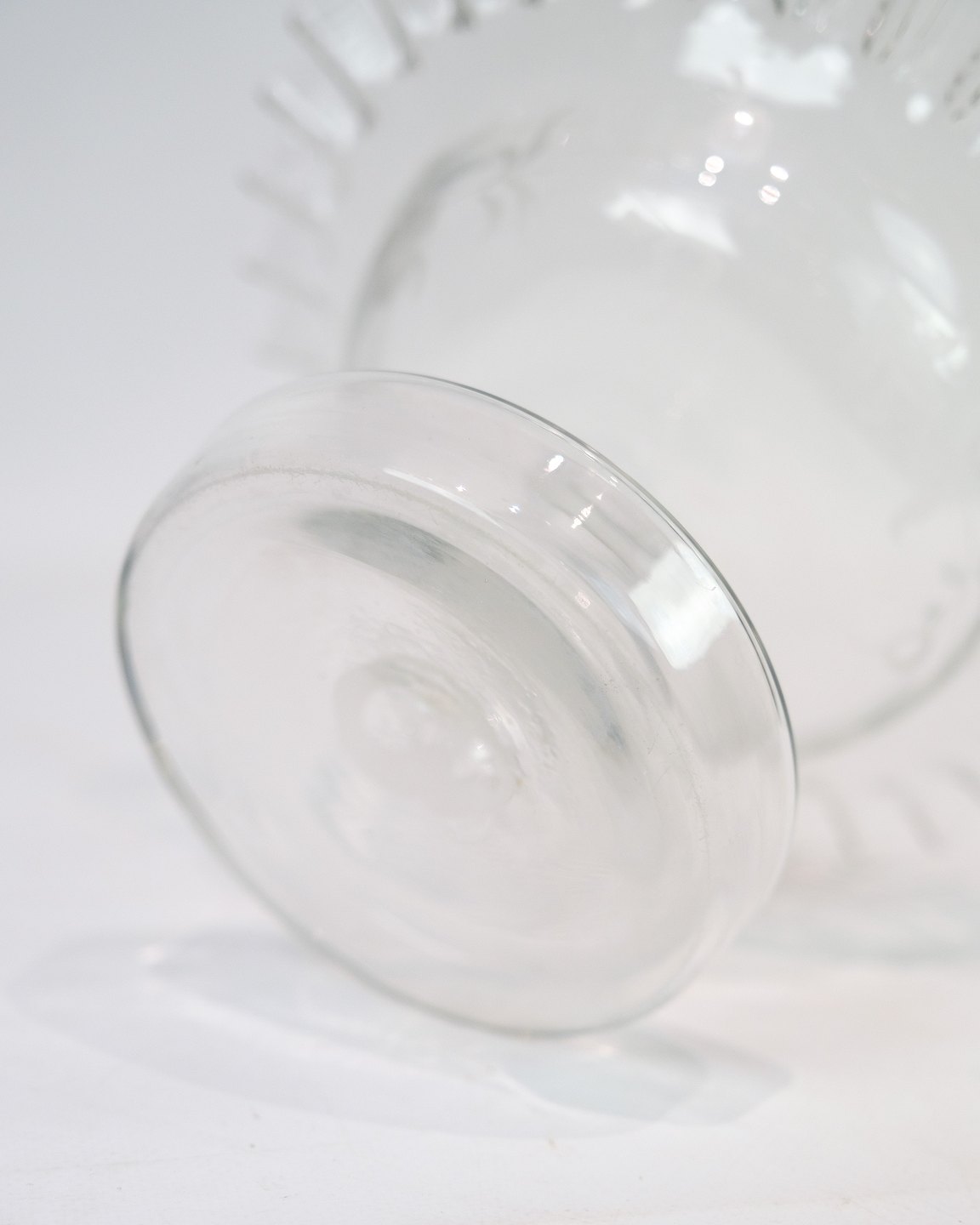 This glass stand is made with the edge pattern and produced by Fynsk Glasværk from the 1890s. The essay is in excellent condition.