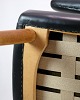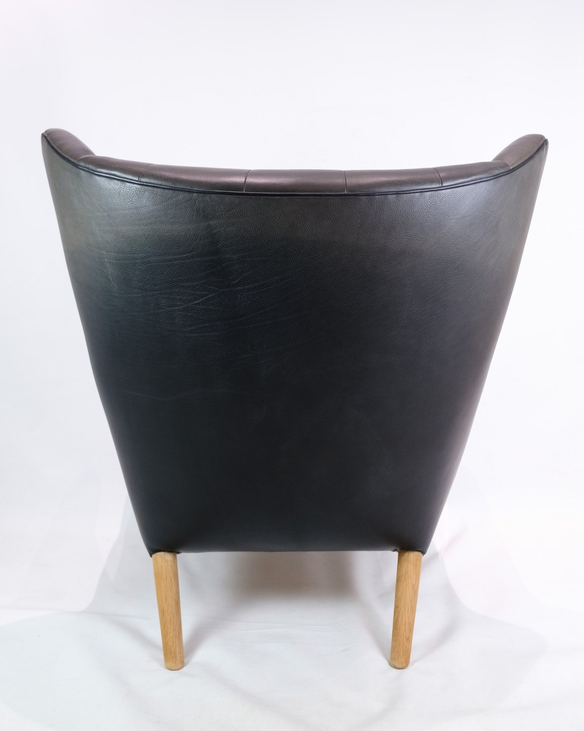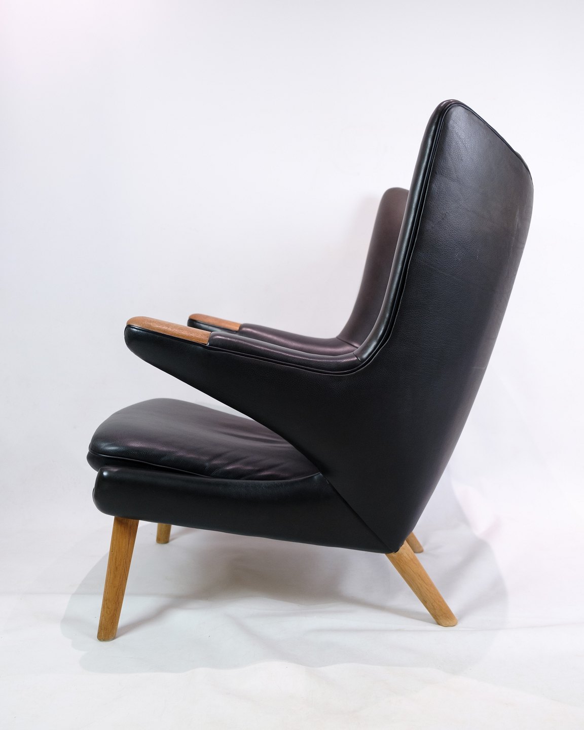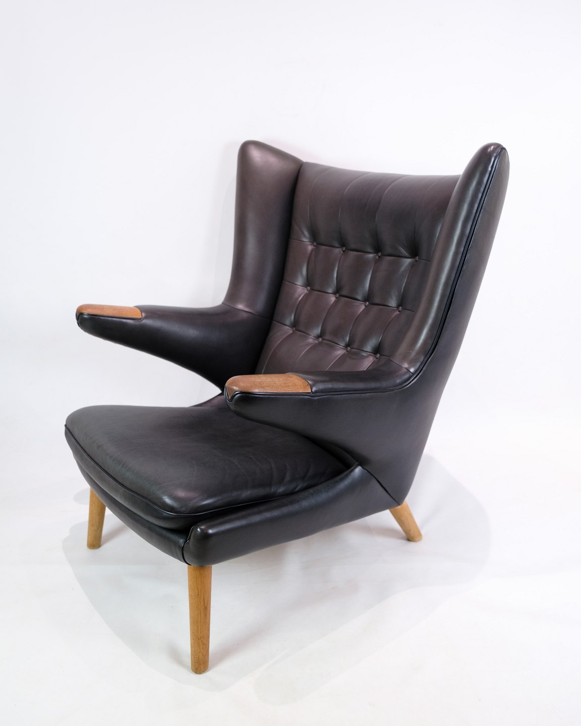 SolgtLænestolen, Model AP 19 også kendt som "Bamsestolen", designet af Hans J. Wegner i 1951 og fremstillet af P.P Møbler, er et ikon inden for dansk design. Stolen er betrukket med luksuriøst sort læder, hvilket sikrer både komfort og et stilfuldt udtryk. Armlænene, kendt som "neglen," er lavet af teaktræ, mens benene er udført i solidt egetræ, hvilket giver en smuk kontrast og holdbarhed.