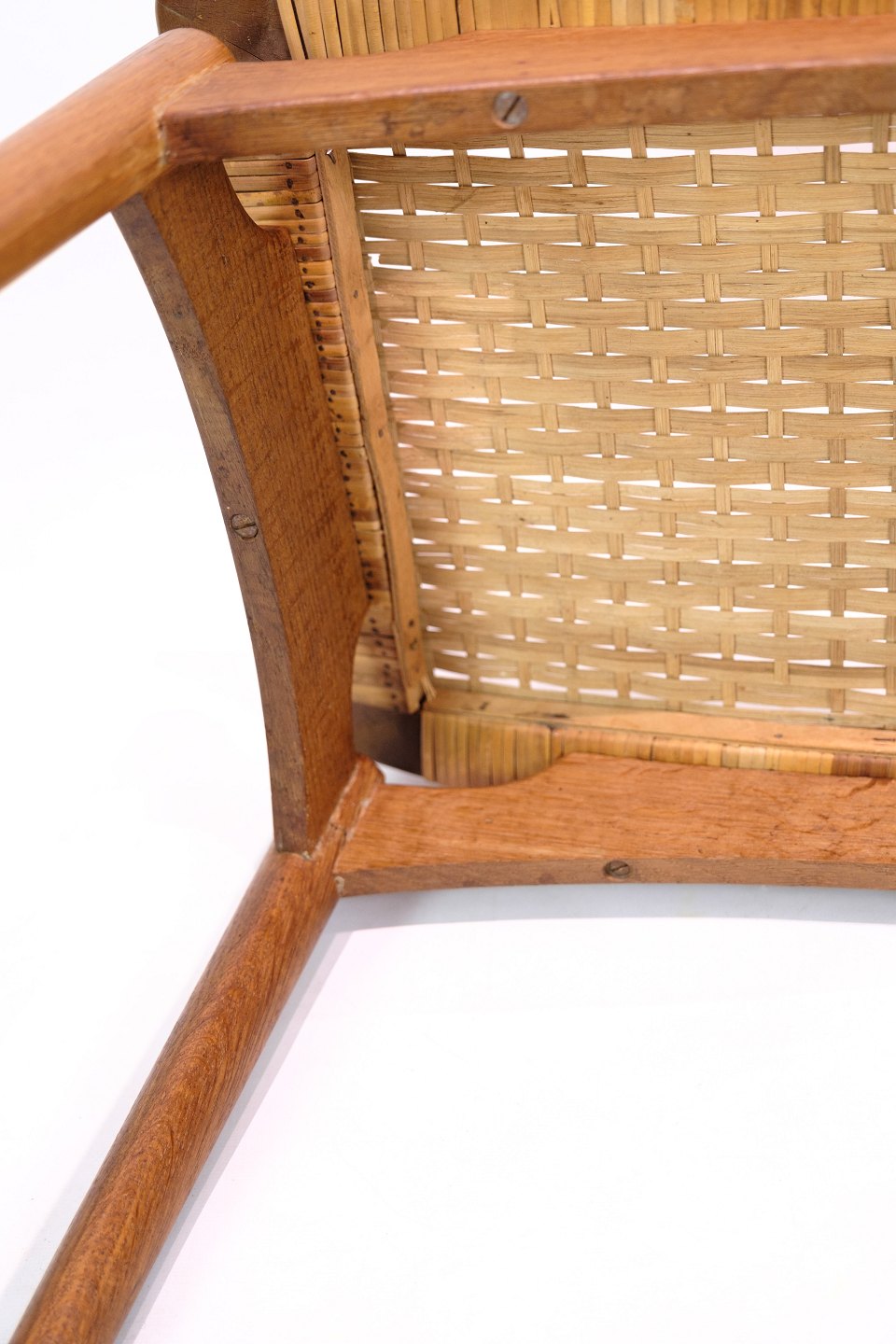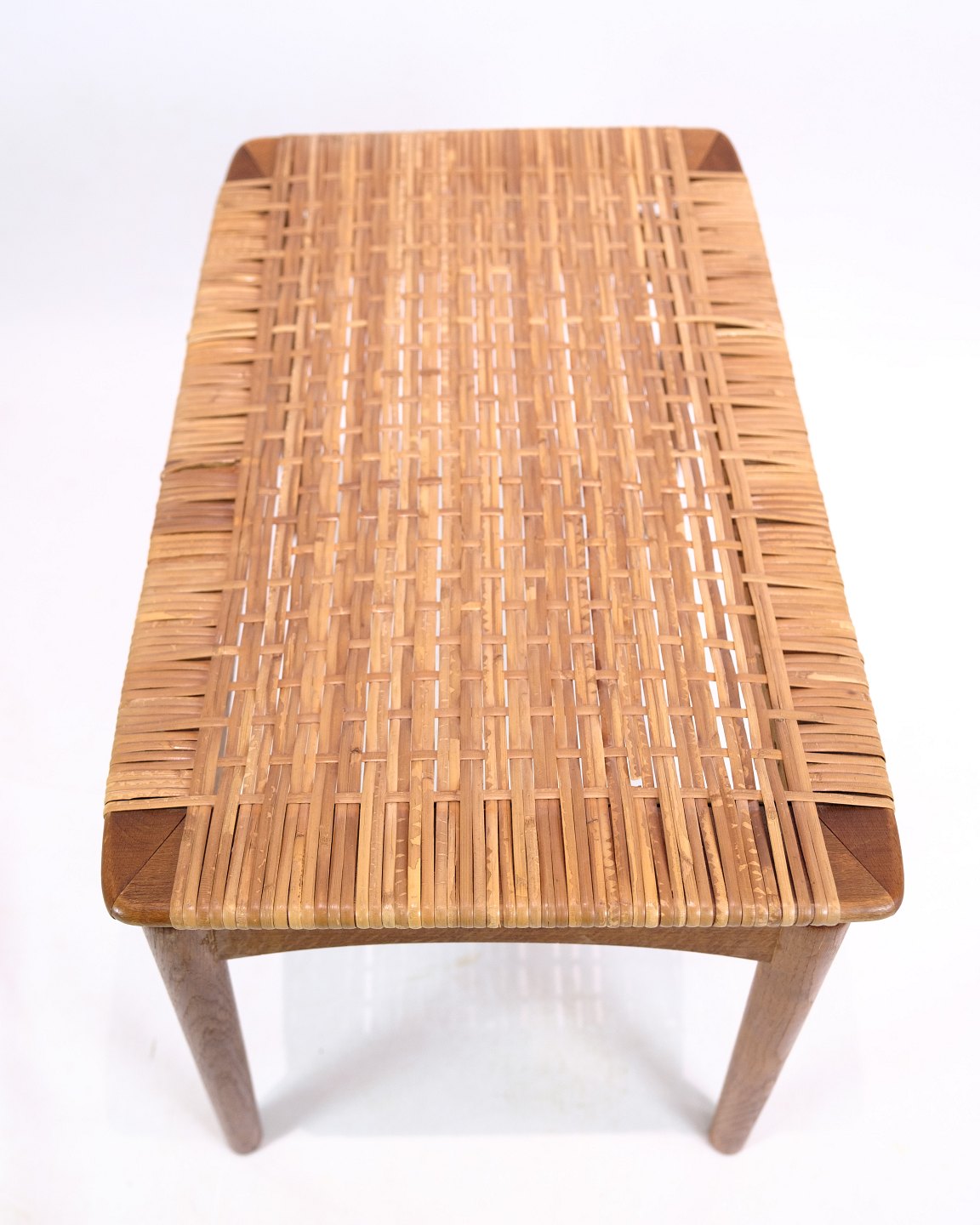Stool in oak with caning, designed by Sigfred Omann for Ølholm Møbelfabrik in the 1960s. The stool combines solid wood with a hand-woven seat, which gives it both strength and elegance. Sigfred Omann is known for his quality designs and, in collaboration with Ølholm Møbelfabrik, a recognized producer of Danish furniture craftsmanship, created this stool.