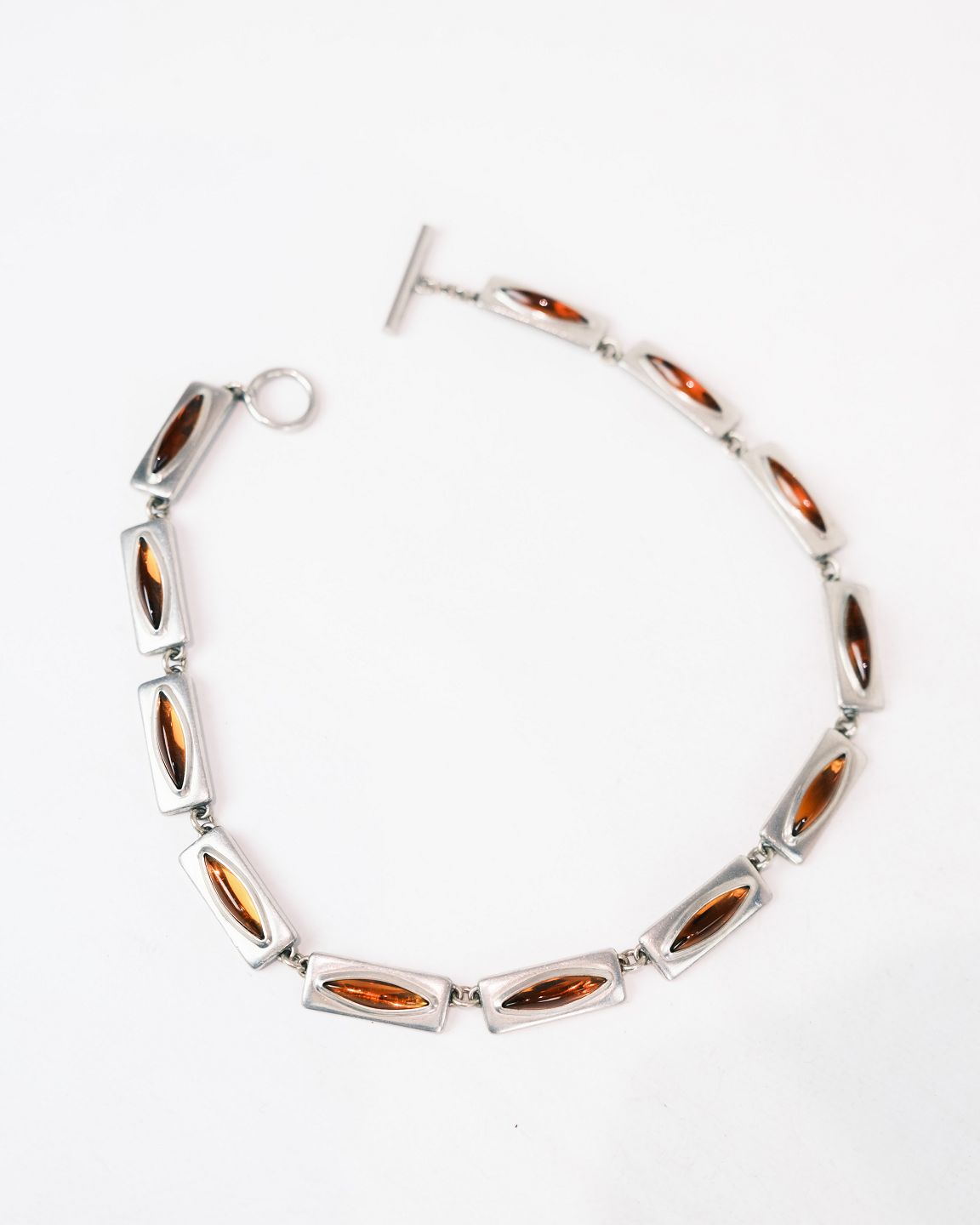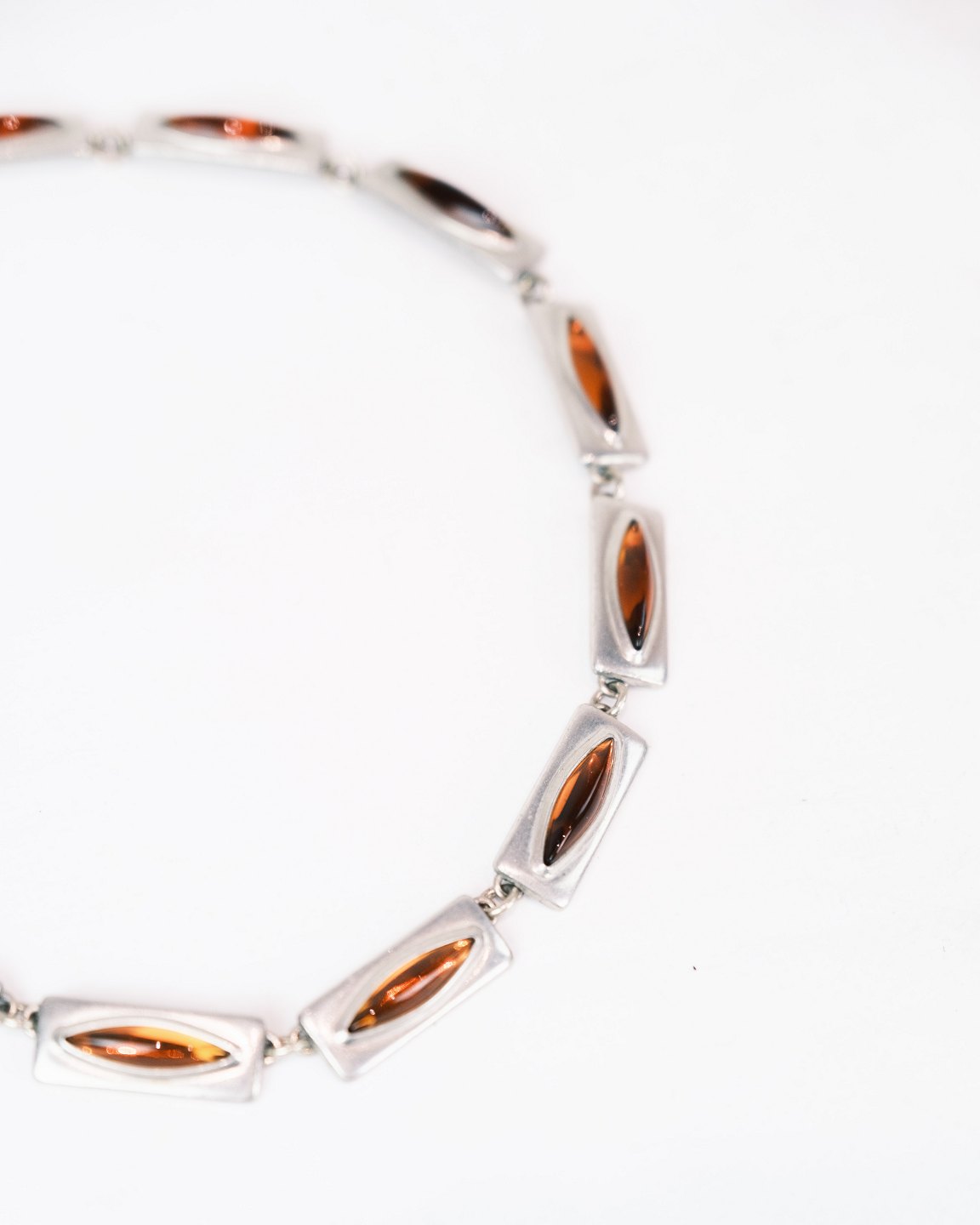Necklace - tin - Embellished With Amber - Jørgen Jensen - Pewter - 1960s