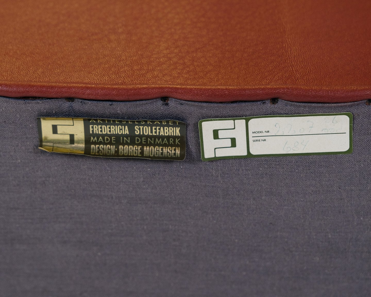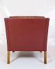 Armchair, model 2207, designed by Børge Mogensen for Fredericia Chair Factory in the 1960s. The chair is upholstered in red leather and has an oak frame. The simple and timeless design combines comfort and aesthetics, making the chair a classic example of Mogensen's functional and stylish approach to furniture design.