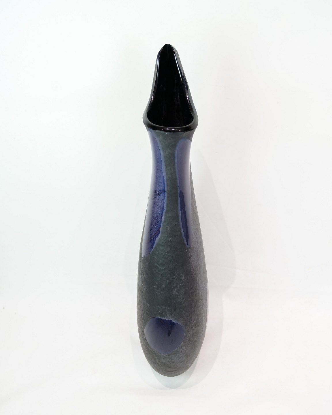Unika vase designet af Elio Raffaeli i 2018 på Murano, kendt for sine glasværker. Vasen, der er i mørkelilla, viser Raffaelis mesterlige evne til at arbejde med farver og former i glas, hvilket gør den til et unikt samlerobjekt.