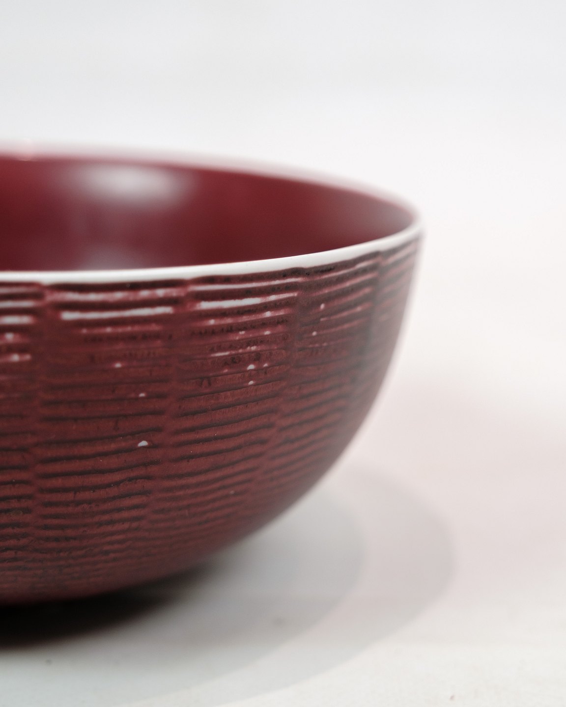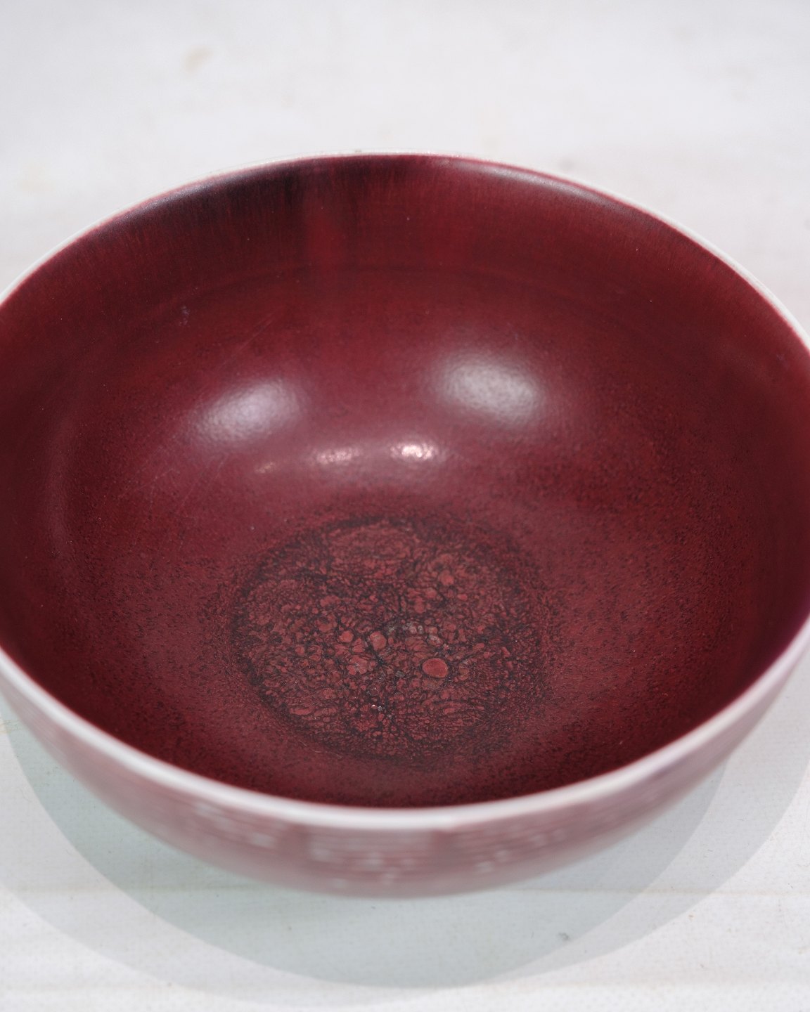 Kontakt os vedrørende prisKeramikskål, model 20.717, med okseblodsfarvet glasur, designet af Axel Salto for Royal Copenhagen. Skålen er et klassisk eksempel på Salto's eksperimenterende tilgang til keramik, hvor han brugte mange forskellige glasurer for at skabe dybe og rige farvetoner.