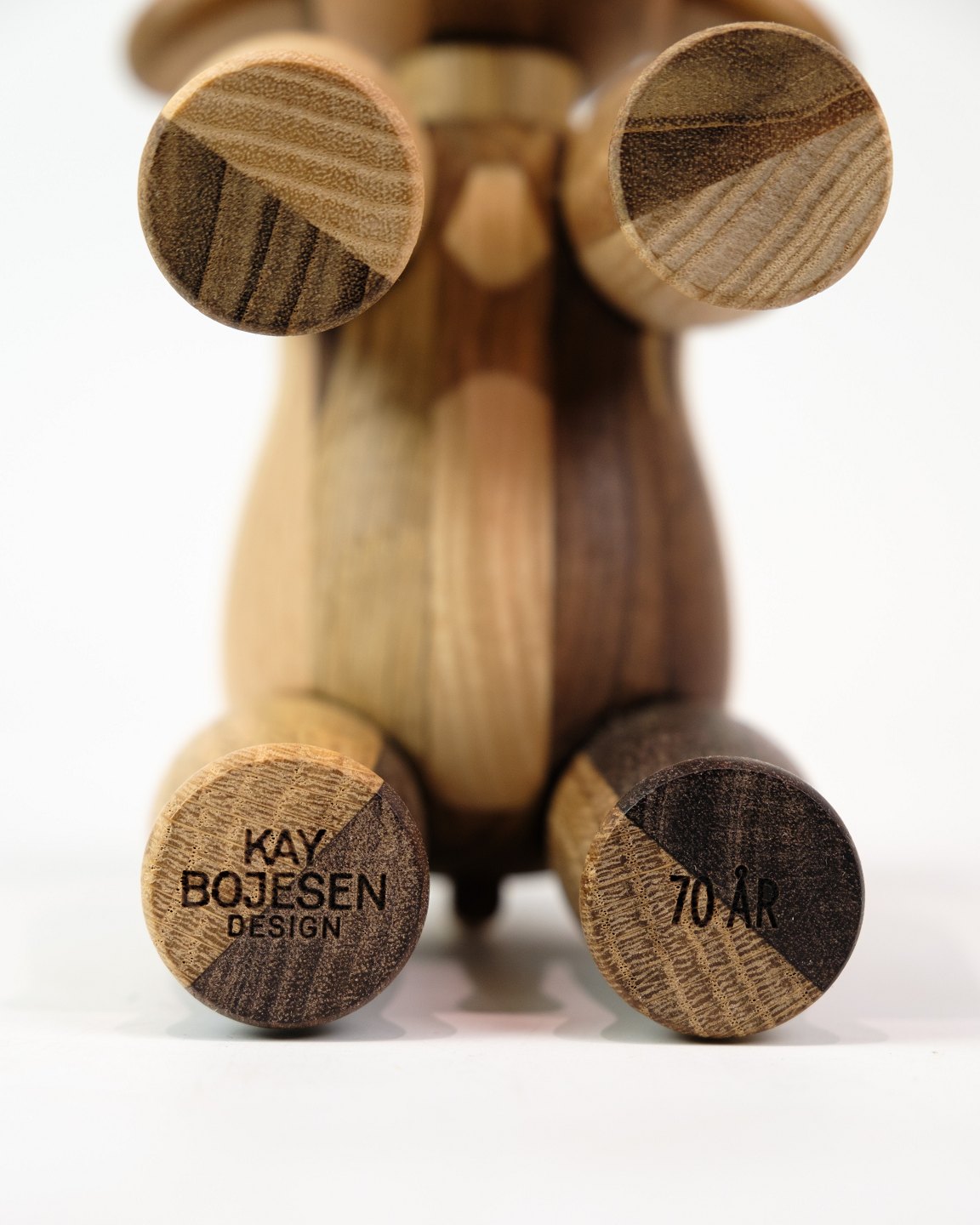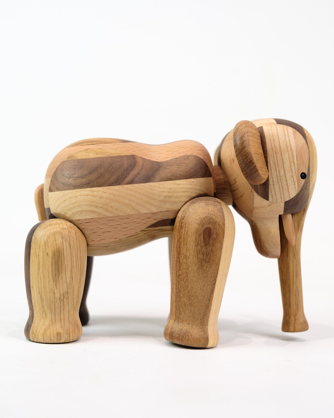 Little Elephant reworked by Kay Bojesen, released for the 70th anniversary, is a special edition of the iconic wooden figure. Kay Bojesen began his career as a silversmith under Georg Jensen but became especially known for his wooden animals, including the famous monkey from 1951. His wooden toys combined simplicity with quality, designed with a focus on functionality and durability. Bojesen believed that design should be accessible to all, creating figures that could bring joy to both children and adults.