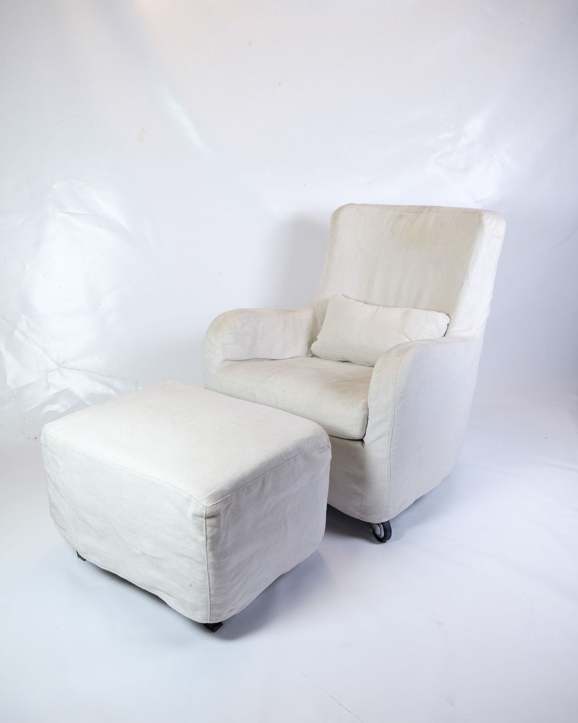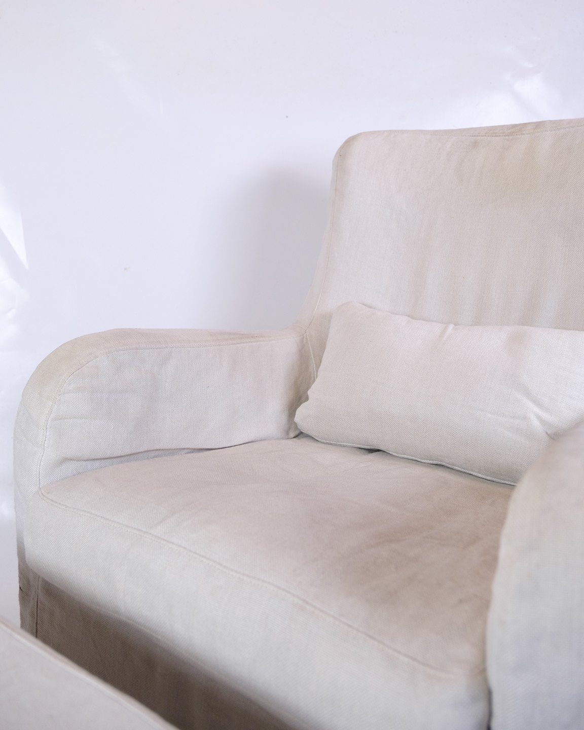 SoldThe Micromilla armchair is a masterpiece that stands out with its stylish design and comfortable functions. Upholstered in white fabric, this chair exudes a timeless elegance that fits perfectly into any modern interior.