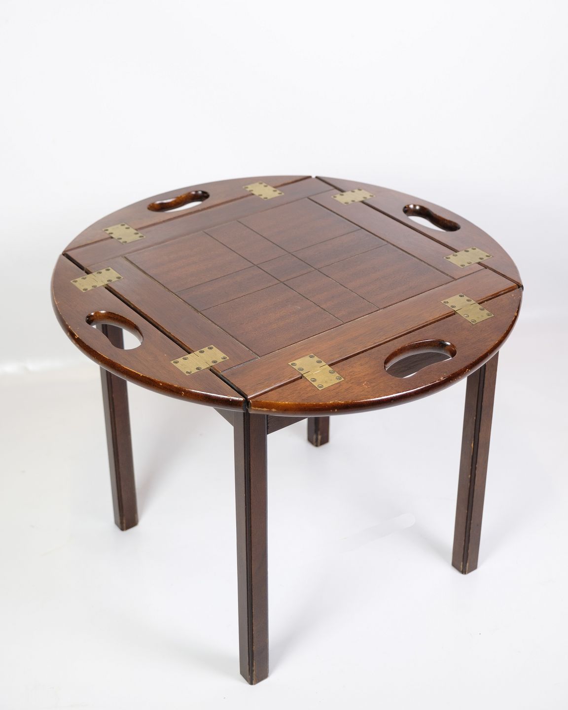 Butler's table made of mahogany from the 1960s. The table is made of solid mahogany, which gives it a warm glow and durability. Butler's tables were popular during this period because of their versatility - they can easily be used as a serving table or side table and often have a removable tray or handle, making them easy to move around.