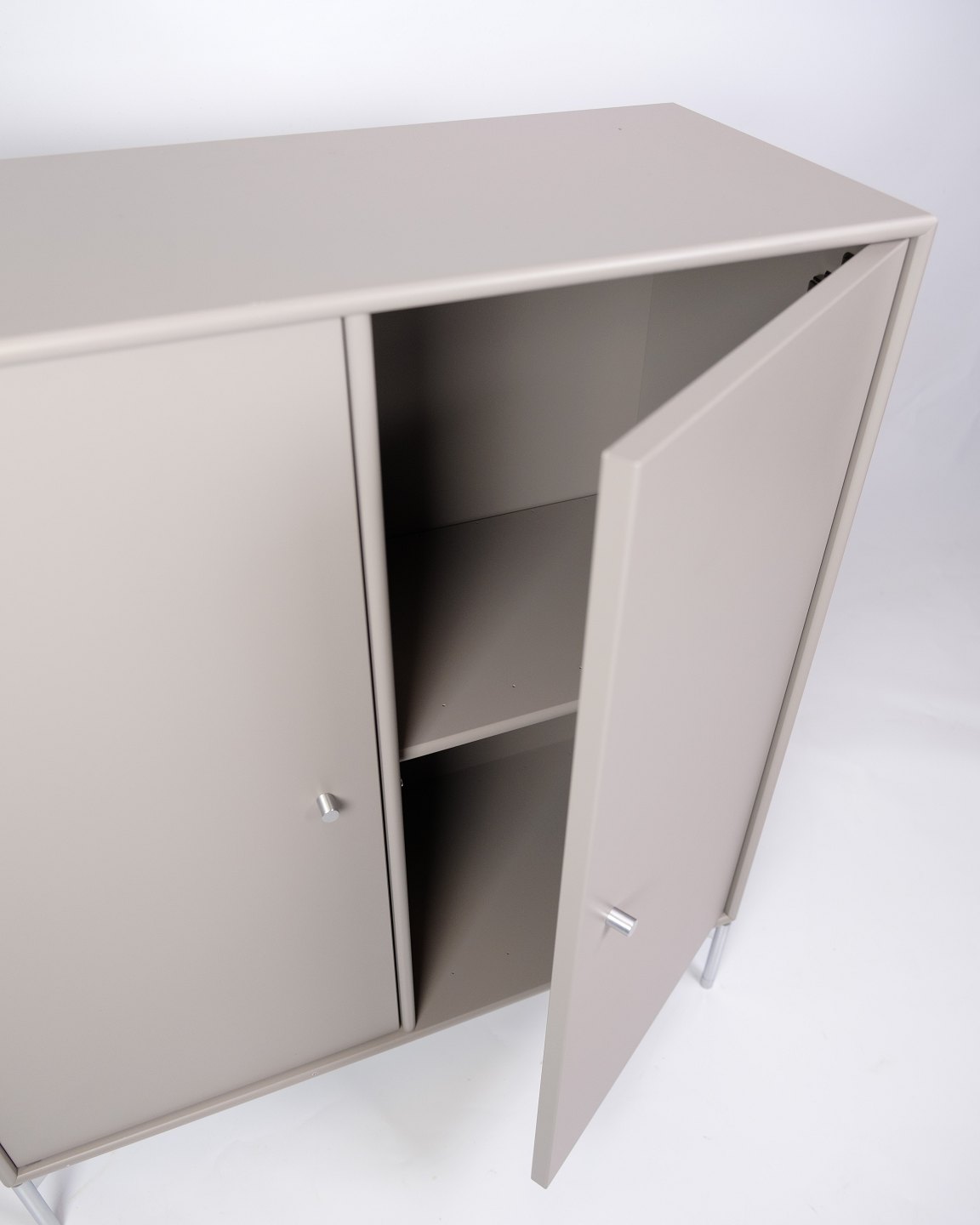Montana cabinet, model 1118, designed by Peter J. Lassen and finished in a grey colour. The cabinet is part of Montana's flexible storage system, which is known for its functional and modular structure. Model 1118 is ideal for storage and can be used both at home and in the office, with the possibility of adapting it to different storage needs.