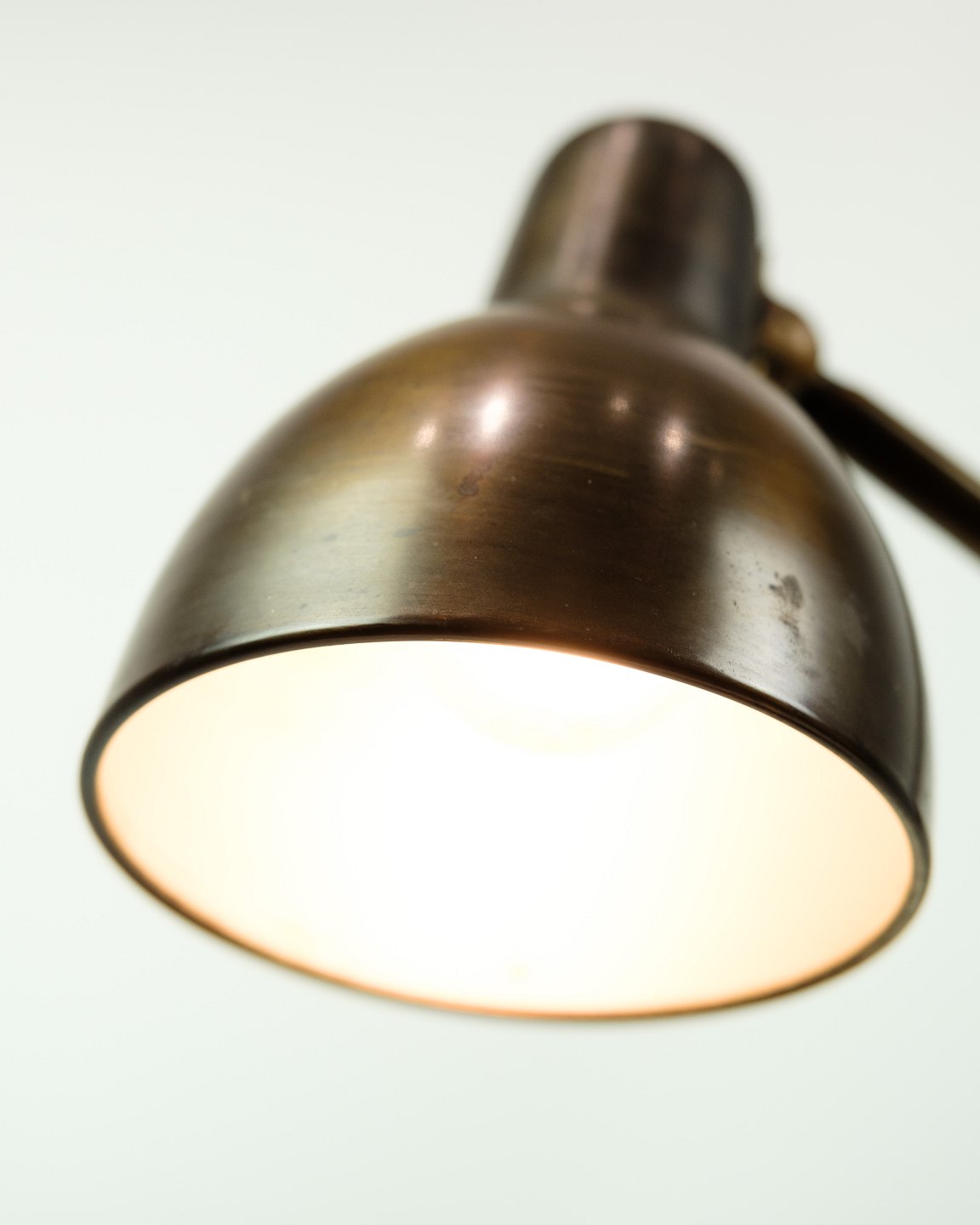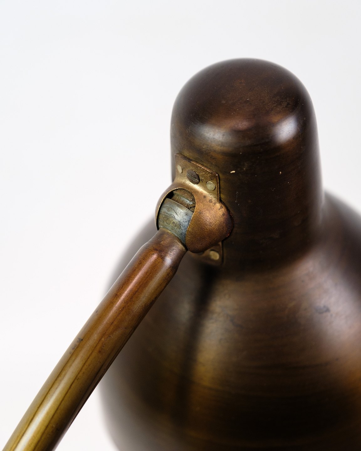 Table lamp made of burnished brass, probably from around 1940-1950. The lamp will be inspected in the workshop before sale. We have the option of changing the cord to a brown fabric cord if desired.
