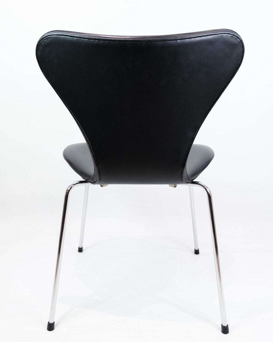 Sæt Af 4 Syverstole - Sjælden - Model 3107 - Polstreret I Sort Læder - Arne Jacobsen - Fritz Hansen - 1980erne