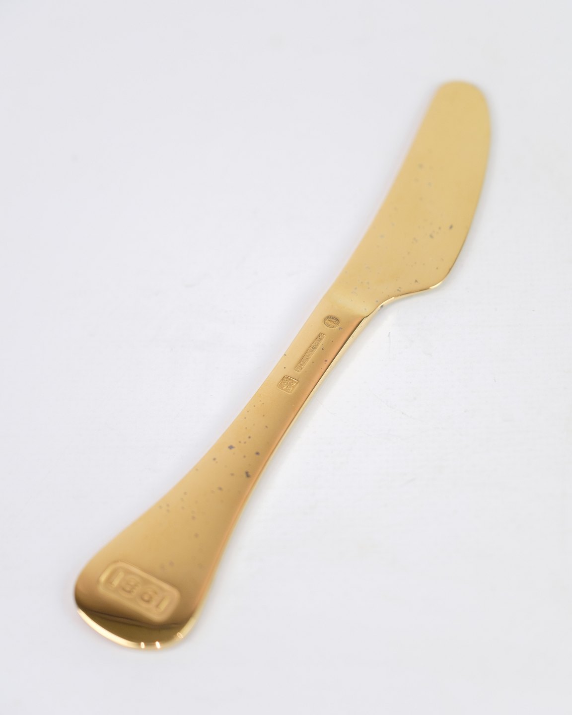 The 1981 knife of the year, designed by Georg Jensen, is called "Evening Star of Splendor" and is a beautiful example of Danish craftsmanship. The knife is made of gilded silver and adorned with details inspired by the elegant flower that gave the knife its name.