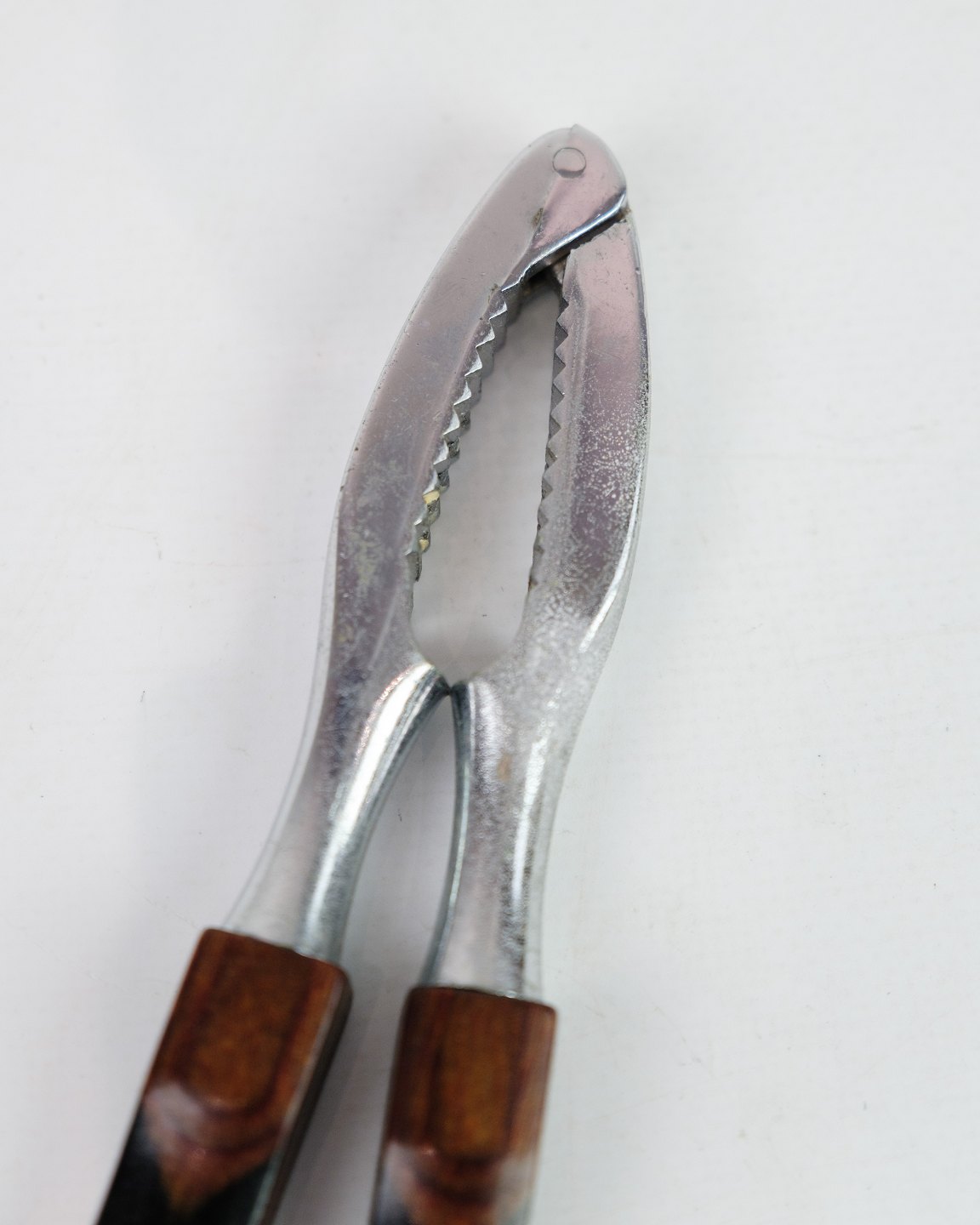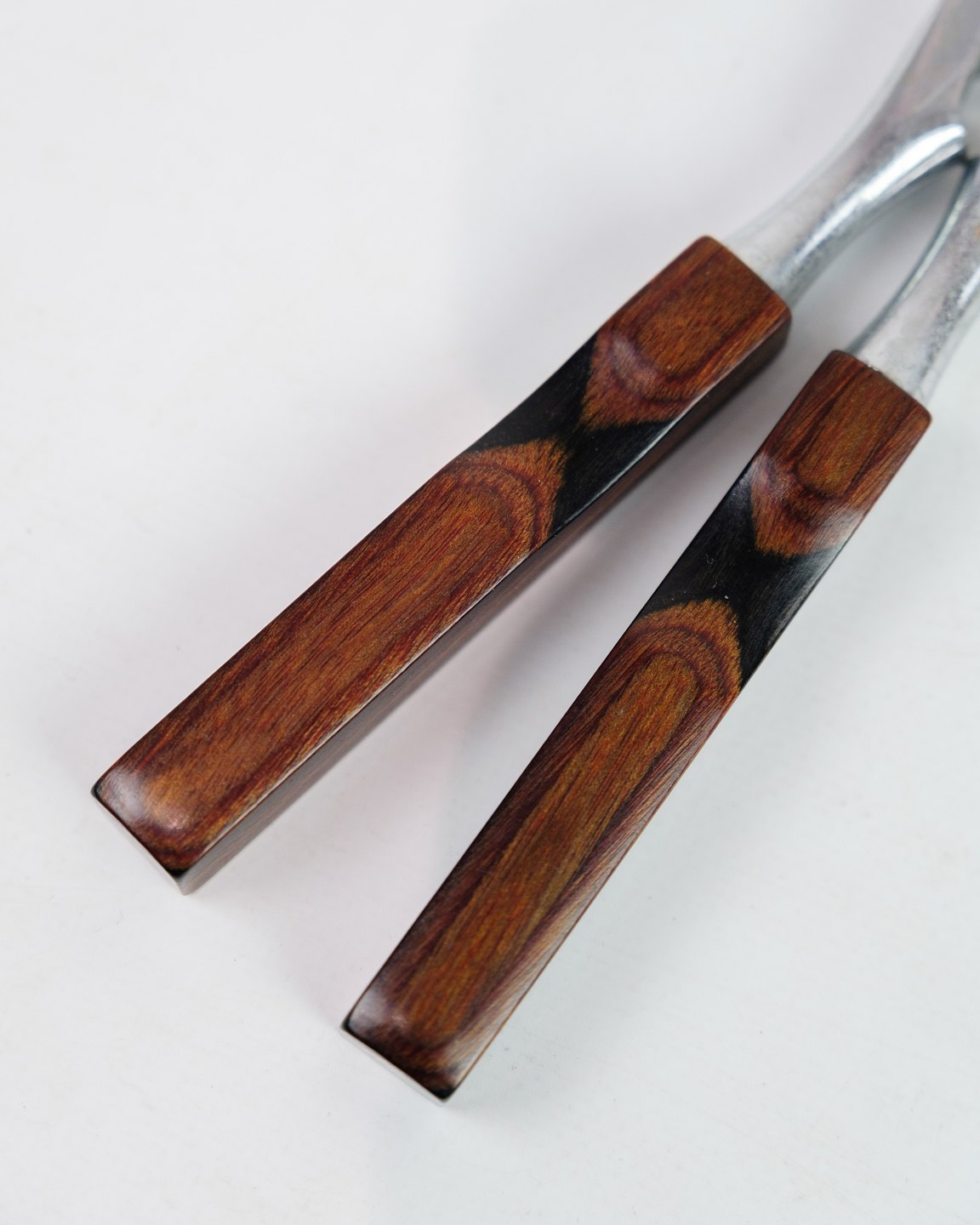 Denne nøddeknækker er et klassisk eksempel på dansk design, hvor funktionalitet og æstetik går hånd i hånd. Den er fremstillet med et greb i palisandertræ, som tilføjer varme og elegance, kombineret med holdbart stål, der sikrer effektiv anvendelse. Nøddeknækkeren er et praktisk redskab, der samtidig fungerer som et dekorativt element i køkkenet eller på bordet.