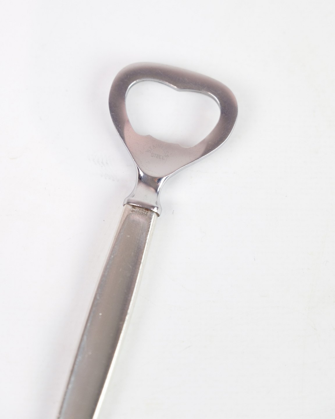 Bottle opener model 272 in sterling silver. The bottle opener is part of the Cypres Series which is designed by Tias Eckhoff and manufactured by Georg Jensen.The Cypres series is known for its simple design that reflects Scandinavian minimalism.