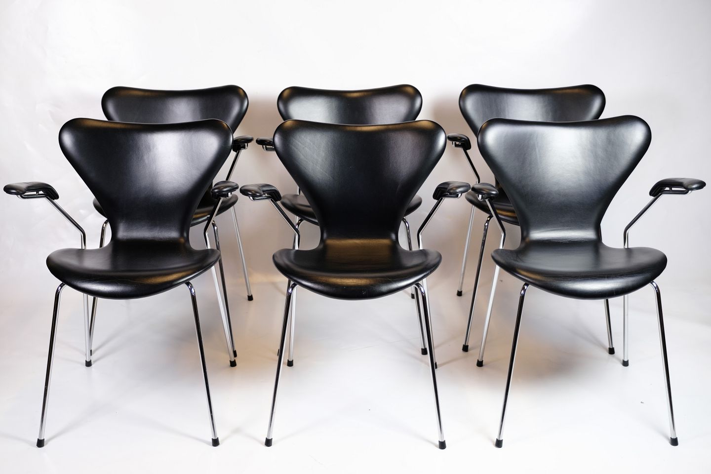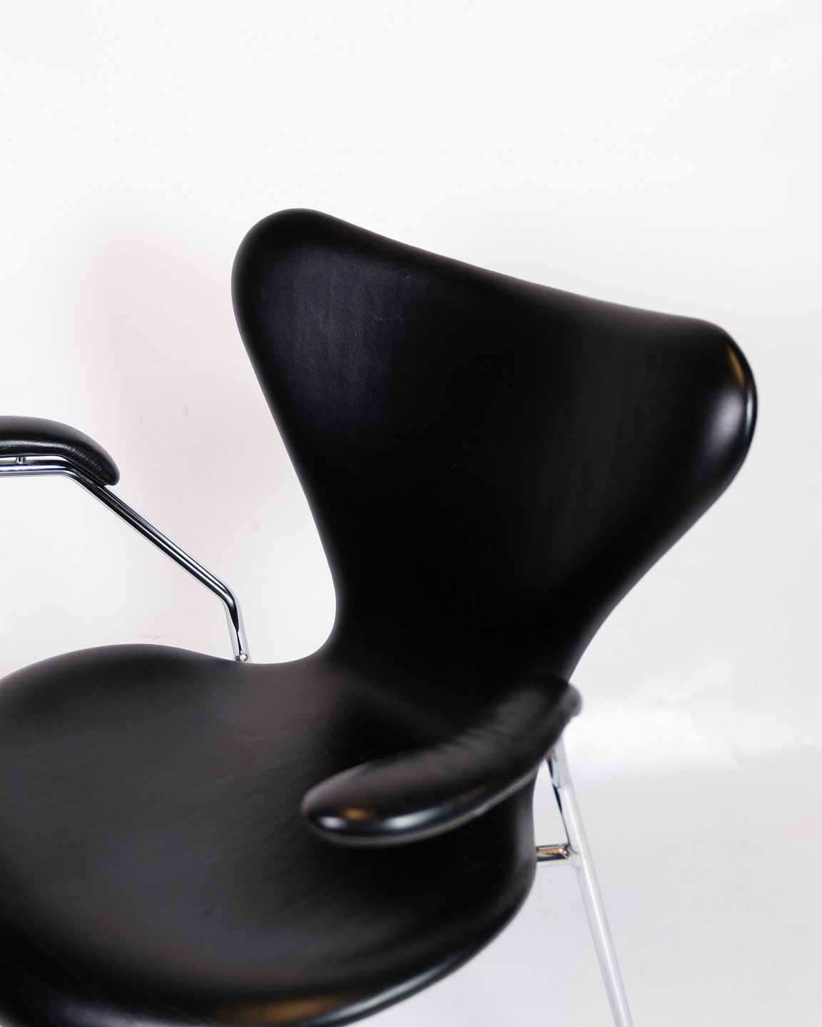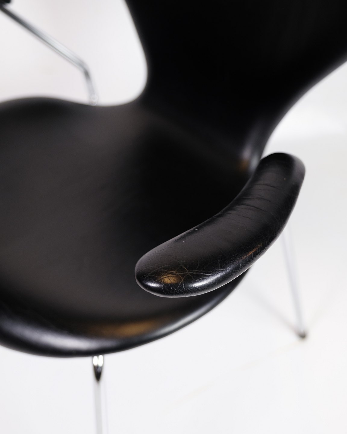 Syver stol med Arme - Model 3207 - Sort læder - Arne Jacobsen - Fritz Hansen