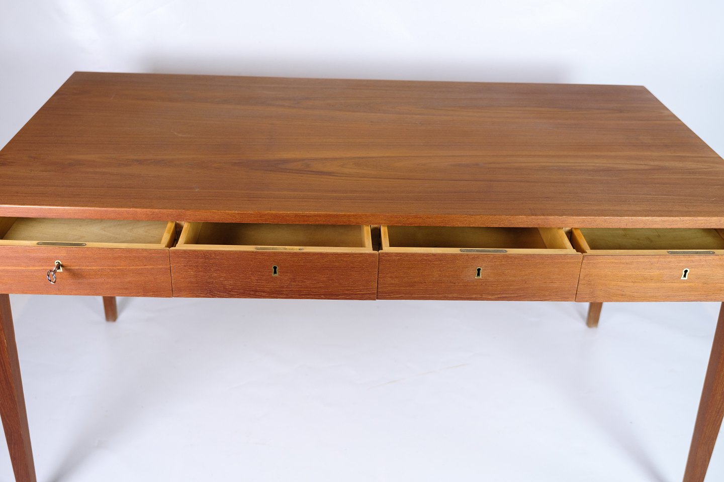 SoldTeak desk, designed by Severin Hansen and produced by Haslev Møbelfabrik in the 1960s. The desk is made of beautiful teak wood, known for its rich color. With its simple and elegant design, this desk is a timeless example of Danish furniture art from the mid-20th century.