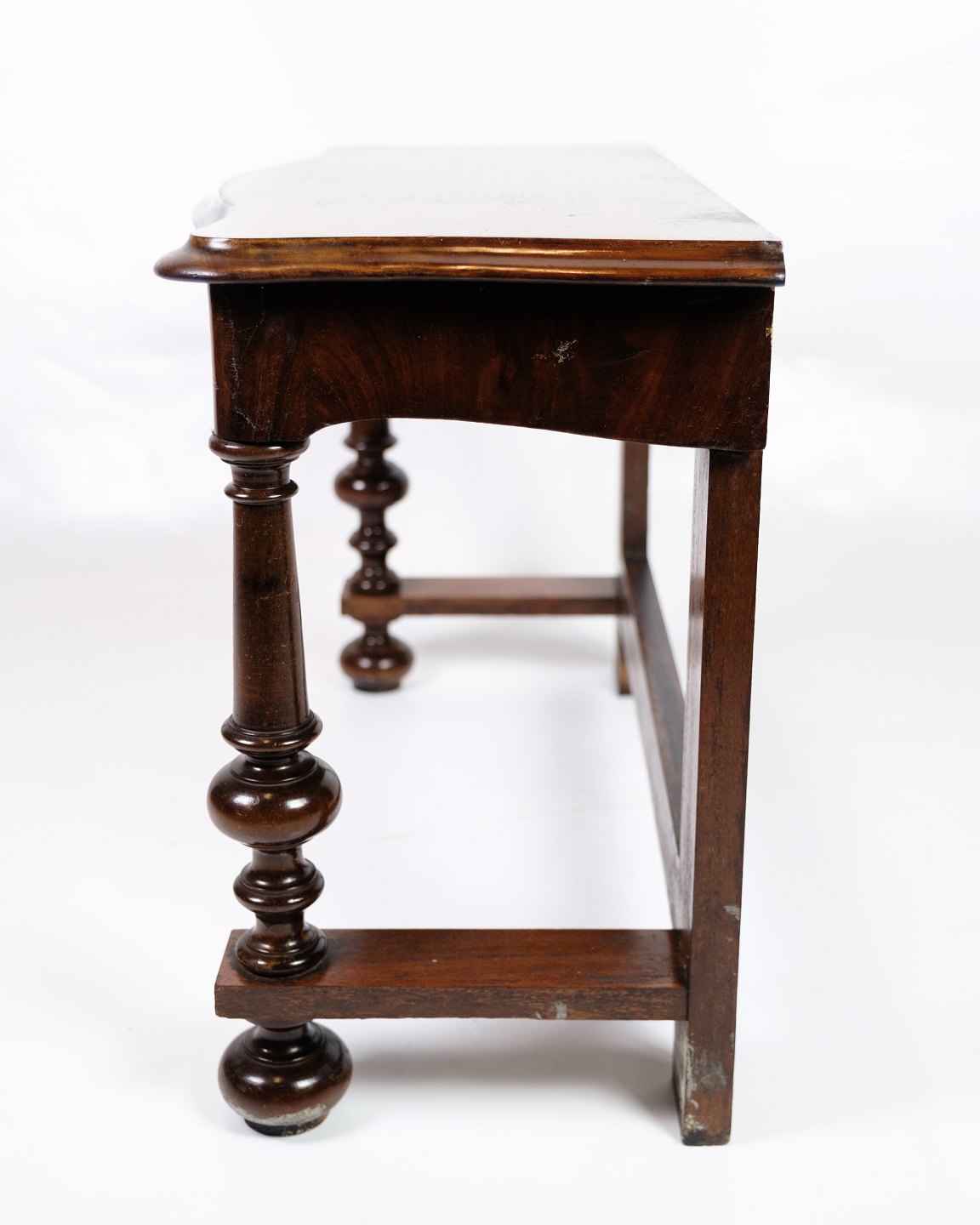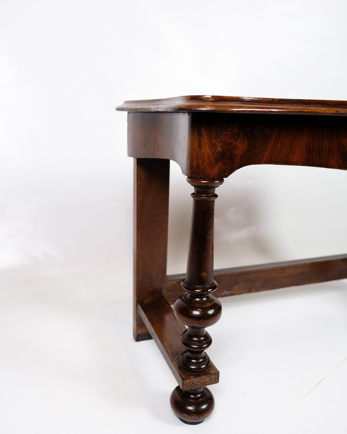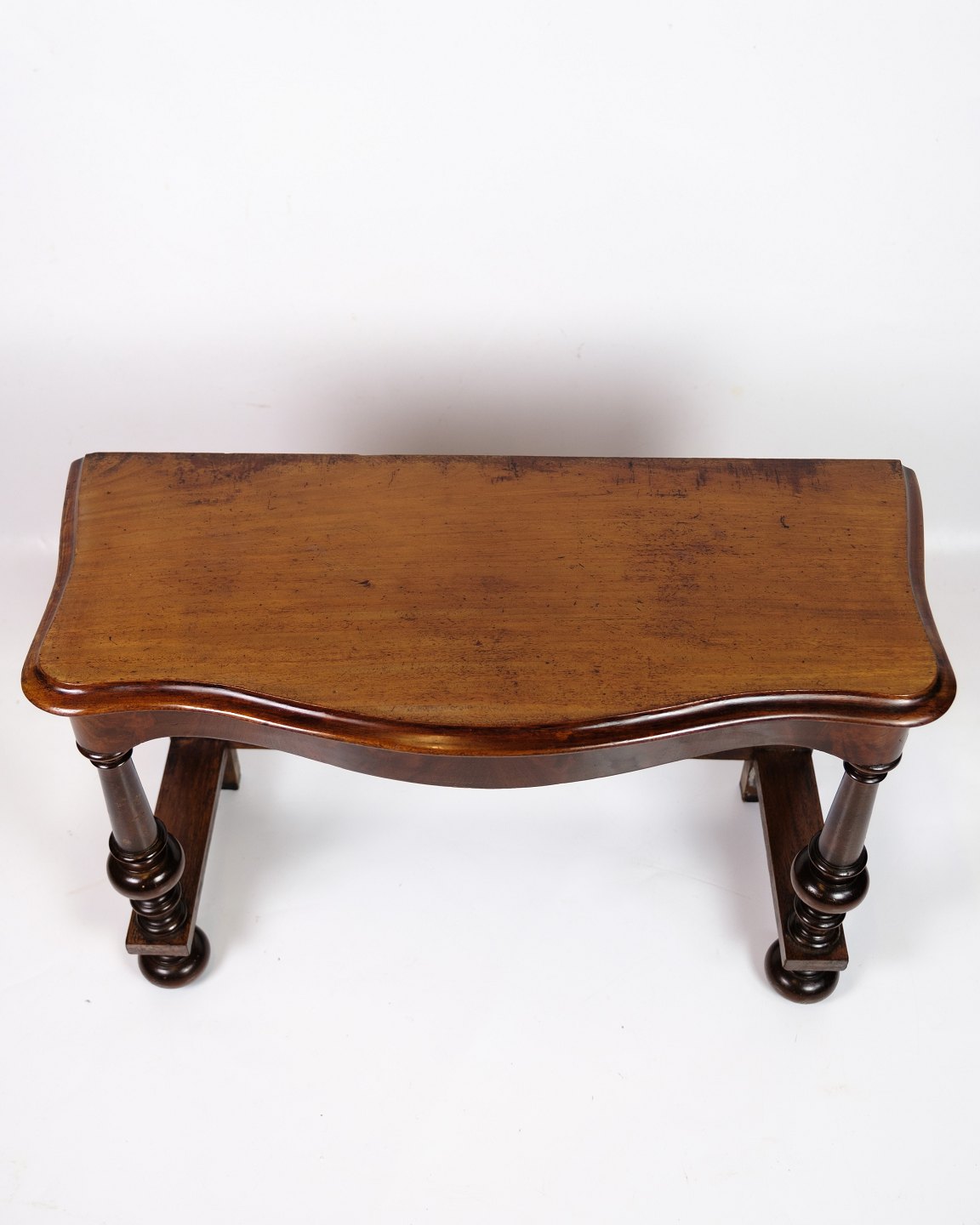 Konsolbord eller entremøbel fra 1920'erne, udført i mahogni med runde, elegant drejede ben. Bordets slanke design gør det ideelt som et funktionelt møbel i entréen eller som konsolbord i stuen. Mahogniens varme farve og fine åremønster afspejler perioden og håndværket, som er typisk for 1920'ernes møbelproduktion.
