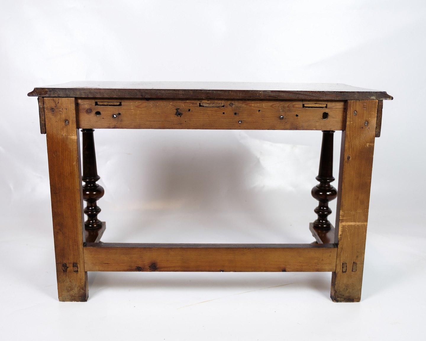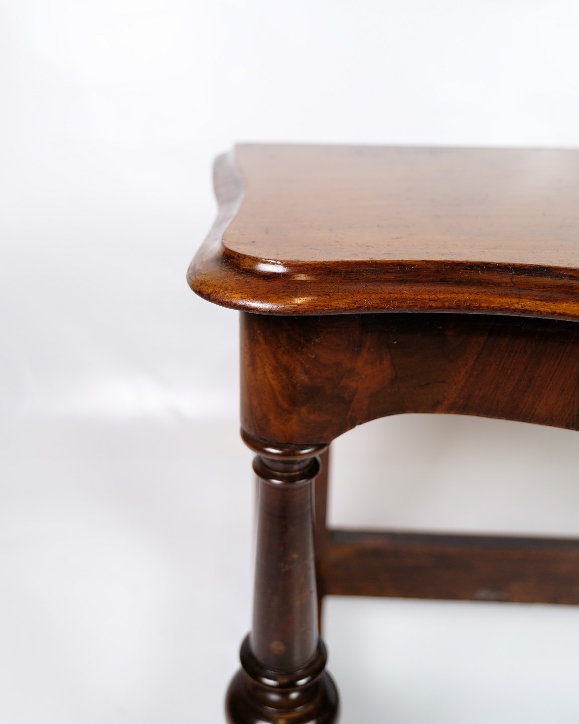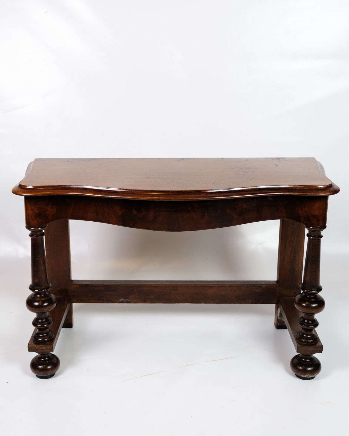 Konsolbord eller entremøbel fra 1920'erne, udført i mahogni med runde, elegant drejede ben. Bordets slanke design gør det ideelt som et funktionelt møbel i entréen eller som konsolbord i stuen. Mahogniens varme farve og fine åremønster afspejler perioden og håndværket, som er typisk for 1920'ernes møbelproduktion.