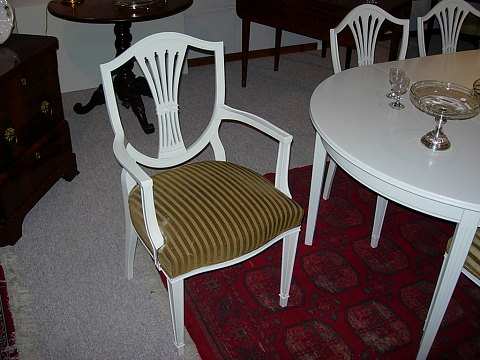 SoldWhite paintet dining room Table with two plates and 4 chair + 2 armchairs in good condition