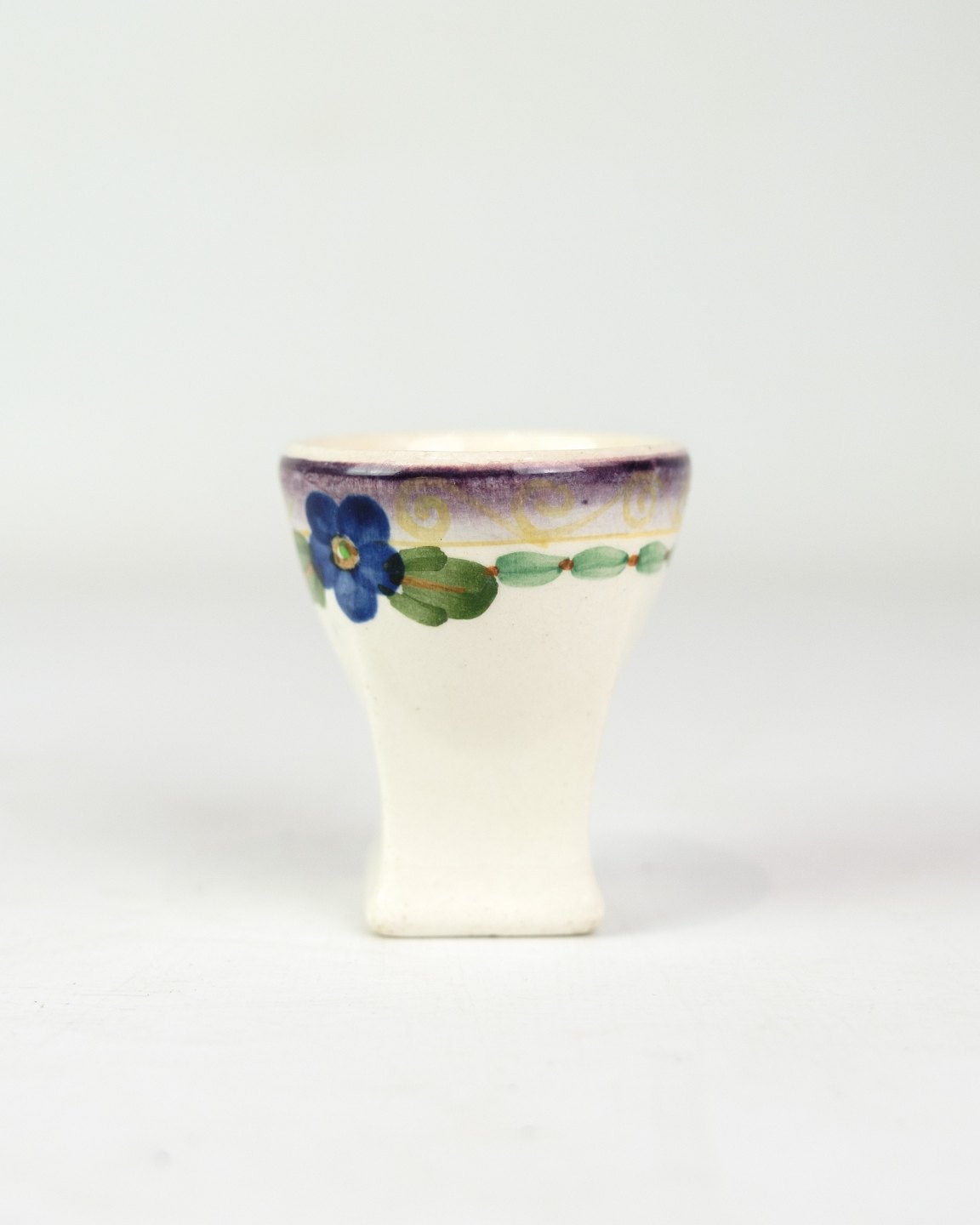 This egg cup, model 624/140, is made of earthenware and beautifully hand-painted with fine details. Their classic design and craftsmanship make them both practical and decorative elements for any table setting.