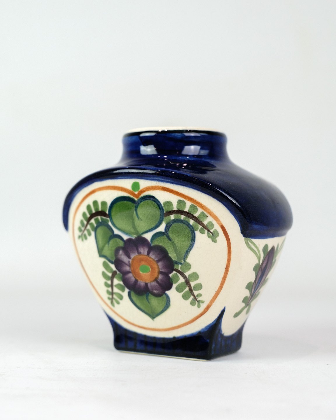 This vase, model 1039/661, is made of earthenware and decorated with a beautiful, hand-painted floral motif. The vase combines classic design with fine artistic details, making it a timeless and decorative item for the home.